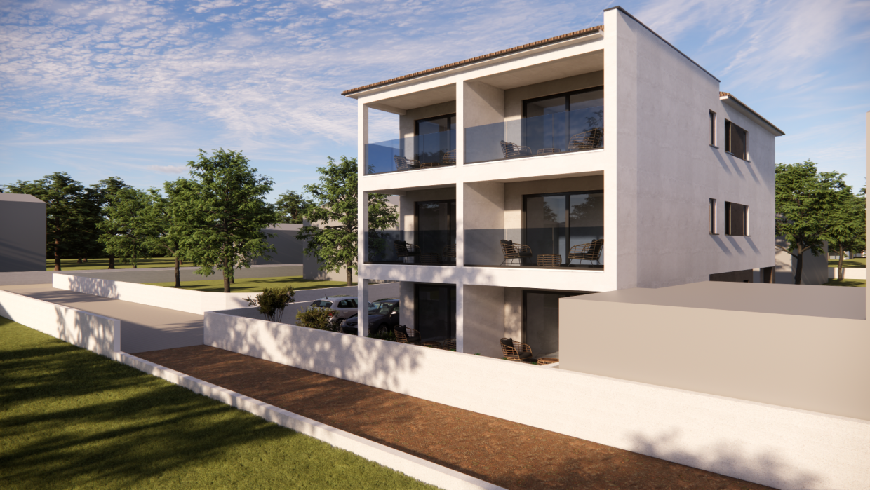 Fažana – Valbandon, dvosoban stan (C) u izgradnji, ukupne površine 62.74 m², smješten na prvom katu stambene zgrade sa šest stambenih jedinica. Stan se nalazi u blizini Fažane, svega 1,5 km od mora. Stambeni dio površine 59.74 m² sastoji se od ulaznog prostora, dvije spavaće sobe, dnevnog boravka s kuhinjom i blagovaonicom, kupaonice i terase. Stanu pripada jedno parkirno mjesto. Oprema stana uključuje PVC stolariju u elegantnoj antracit boji s troslojnim staklom, električne rolete, visokokvalitetnu keramiku, opremljeno kupatilo te klima uređaj. Planirani završetak radova: kraj 2026. godine. Način plaćanja: - 10 % kapara - 40 % u roh-bau fazi - 20 % obrtnički radovi I - 20 % obrtnički radovi II - 10 % po ishođenju uporabne dozvole