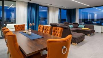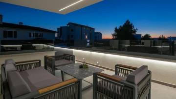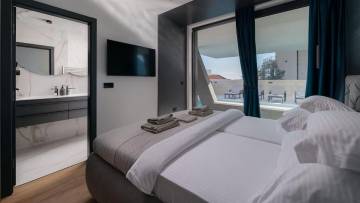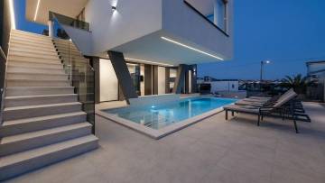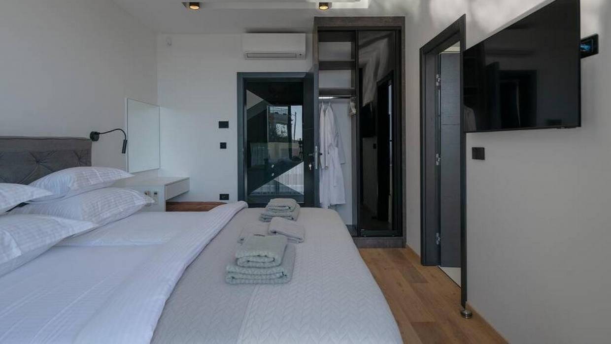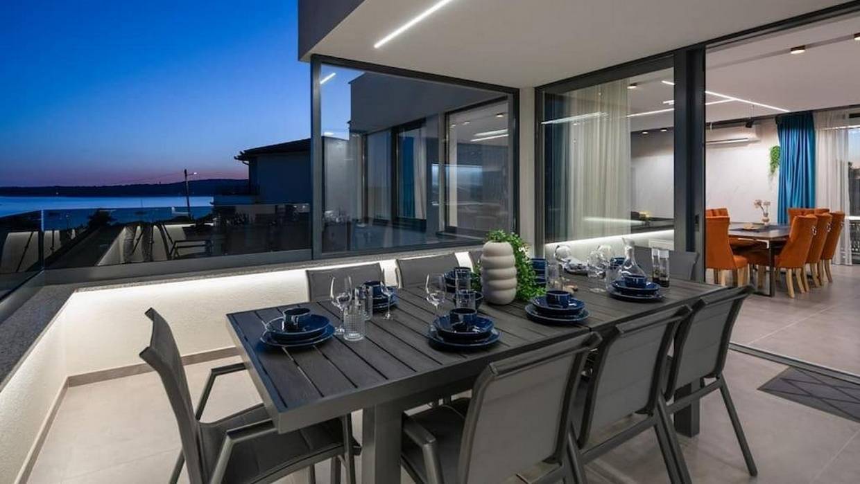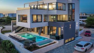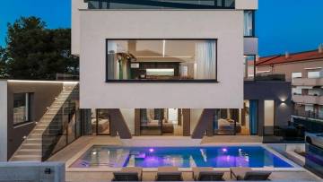 Na odličnoj lokaciji, svega 200 metara od mora i marine, u mirnom okruženju modernih i elegantnih kuća, prodaje se samostojeća kuća građena s visokokvalitetnim materijalima u interijeru i eksterijeru.