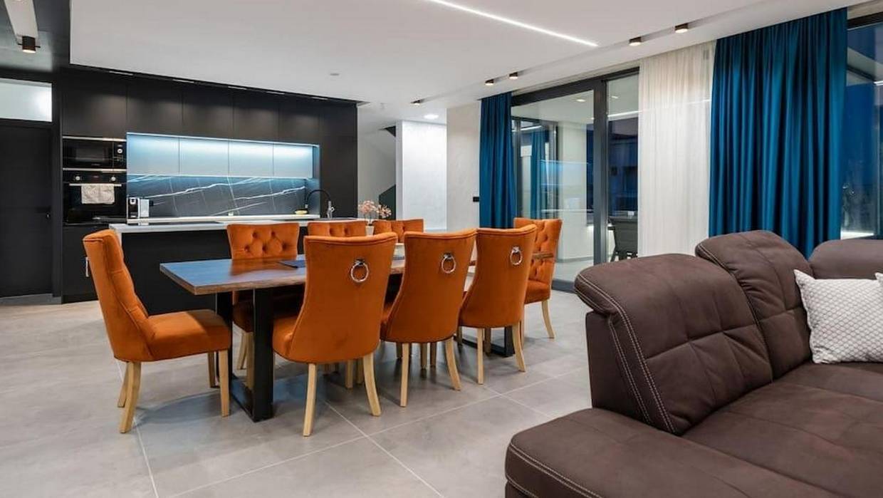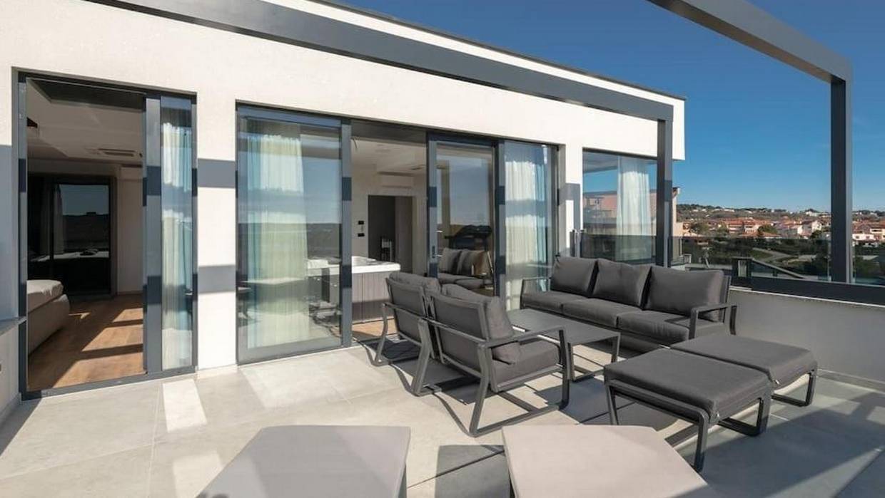 Kuća je u potpunosti namještena i moderno opremljena. Posjeduje sustav dizalica topline za grijanje i hlađenje, klimatizaciju u svakoj sobi, namještaj izrađen po mjeri, kamene podove, te dvostruke staklene ograde na stubištu i terasama. U sklopu okućnice nalaze se četiri parkirna mjesta, od kojih dva imaju punjače za električna vozila.