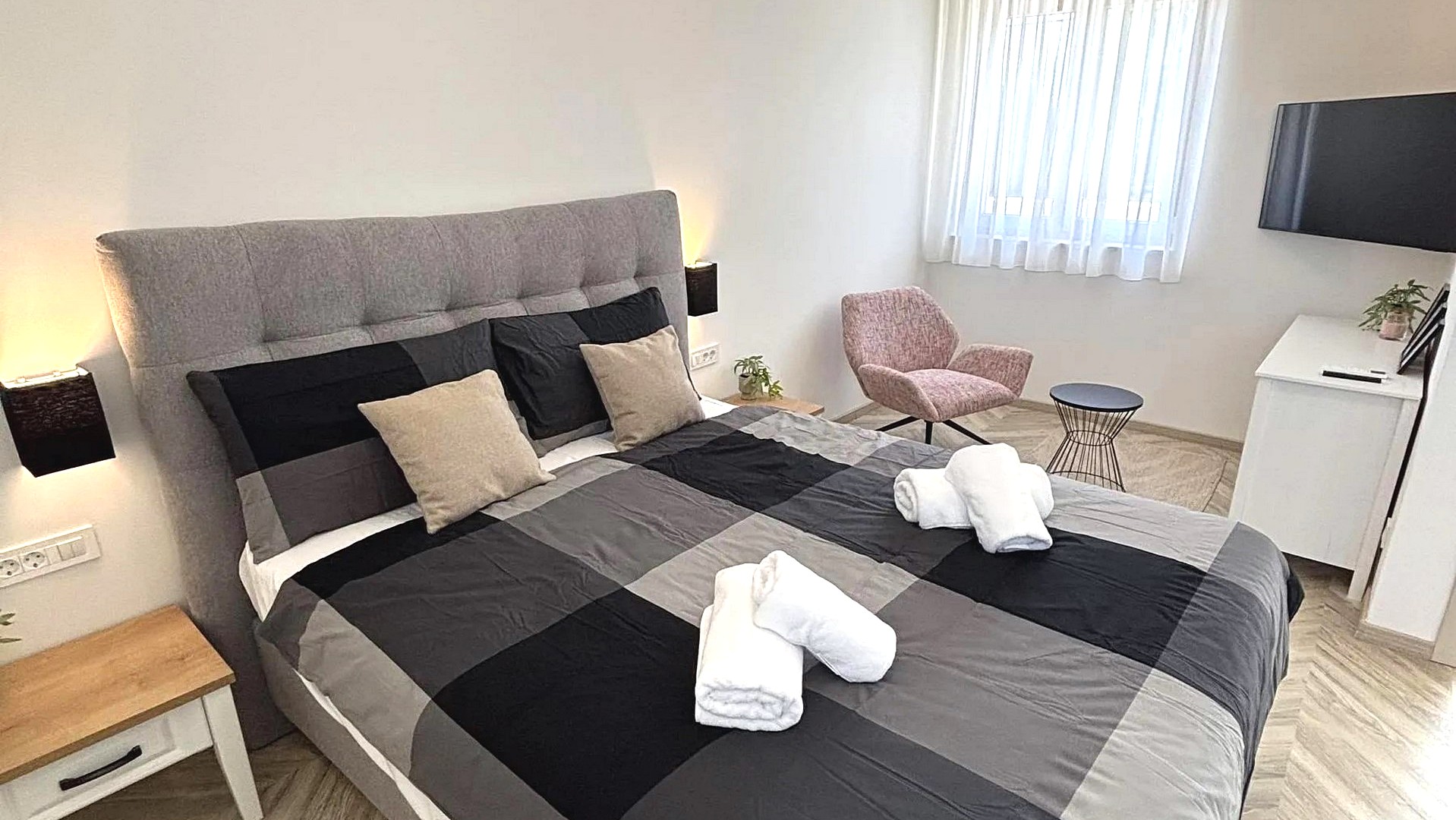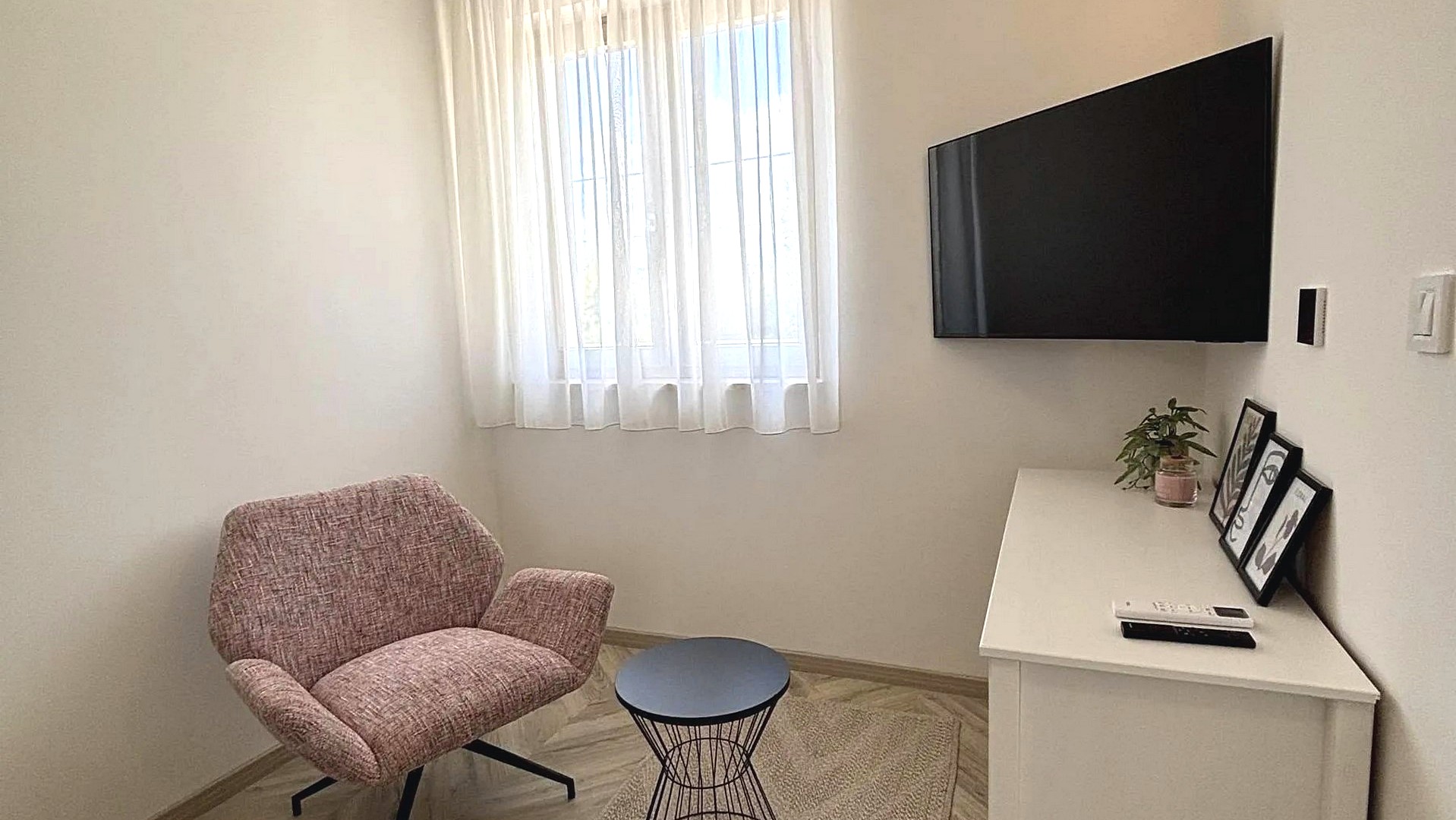 Drei Parkplätze stehen zur Verfügung, darunter eine Ladestation für Elektrofahrzeuge.