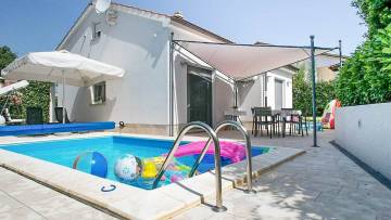 Fora sale a detached house with pool near Momjan. It is located in a quiet settlement, surrounded by greenery and has a wonderful open view of the hills and the sea in the background. Built in the traditional Istrian style, the total area of the house is 200 sqm; consists of a ground floor and an upper floor, where there are 3 bedrooms, 3 bathrooms, a kitchen and a large living room. From the first floor, there is access to a large, spacious terrace. On the 1,000 qsm garden is a swimming pool and a summer kitchen. 5 km from the Slovenian border, 10 km from Buje and 15 km from the sea. The price applies for the companies in the VAT system, while for person buyers the VAT is added.
