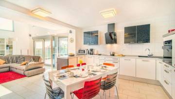 The villa was built in 2011 and has been regularly maintained. It has an A+ energy rating, underfloor heating throughout the house via a heat pump, and solar panels. It is sold fully furnished and equipped.