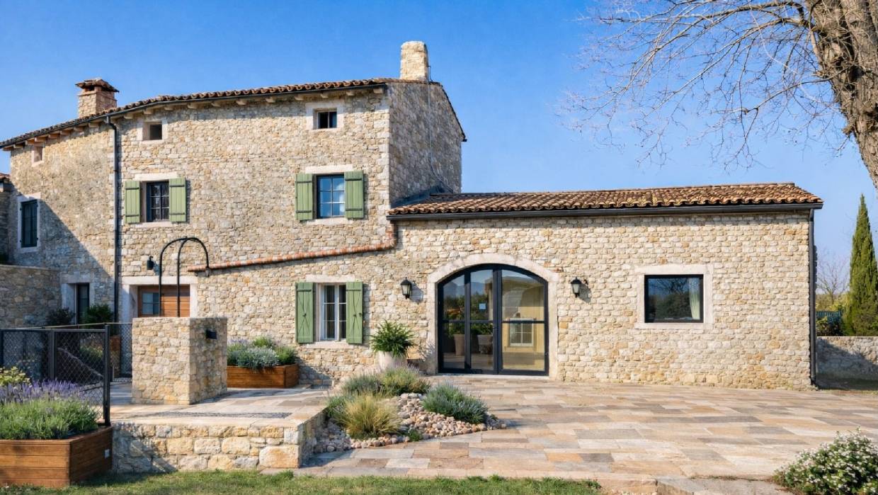Kuća očarava tradicionalnom istarskom arhitekturom i rustikalnim šarmom koji se osjeća u svakom detalju. Prvi dio kuće prostire se na jednoj komfornoj etaži, dok je drugi dio raspoređen na dvije etaže, pružajući dovoljno prostora za realizaciju različitih ideja – bilo za obiteljski dom, kuću za odmor ili investiciju u turistički najam.