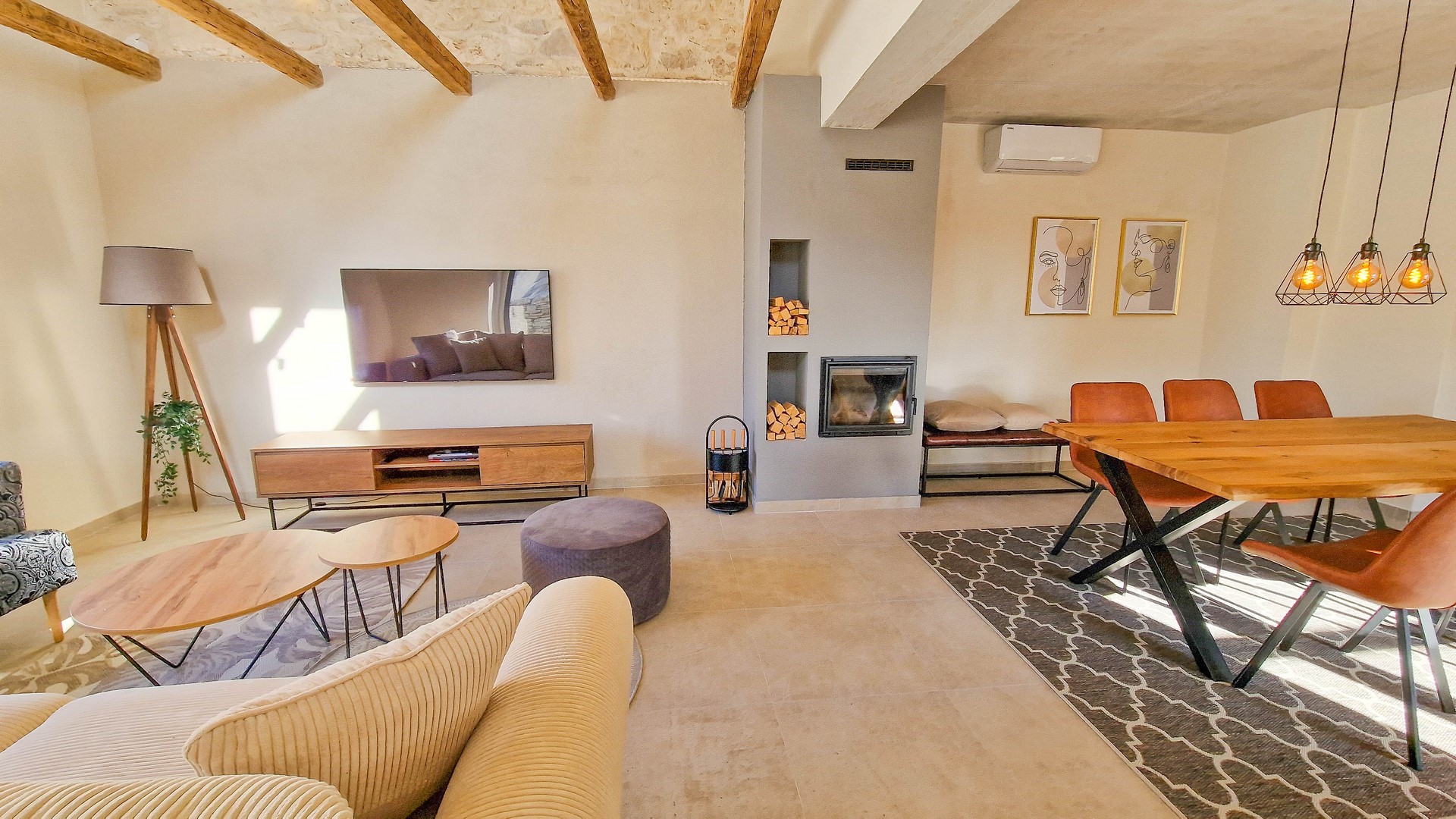 Grijanje kuće je omogućeno s podnim grijanjem, kaminom u dnevnom boravku te 4 klima uređaja, u svakoj spavaćoj sobi te u dnevnom boravku