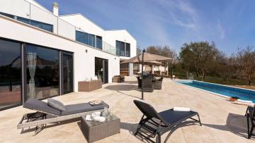 Spacious villa of 454 sqm on the plot of 6,271 sqm, 6 parking spaces, a 36 sqm swimming pool, located 15 km from Poreč and the sea, in an extremely quiet location with a beautiful view of nature.