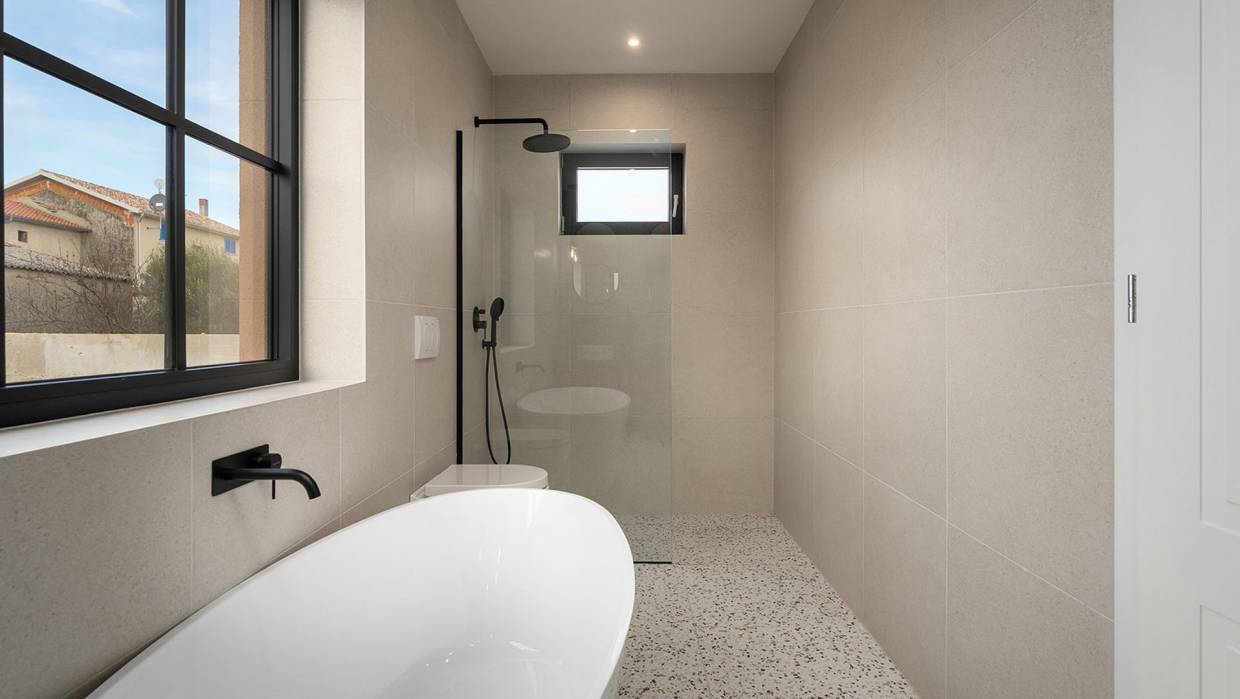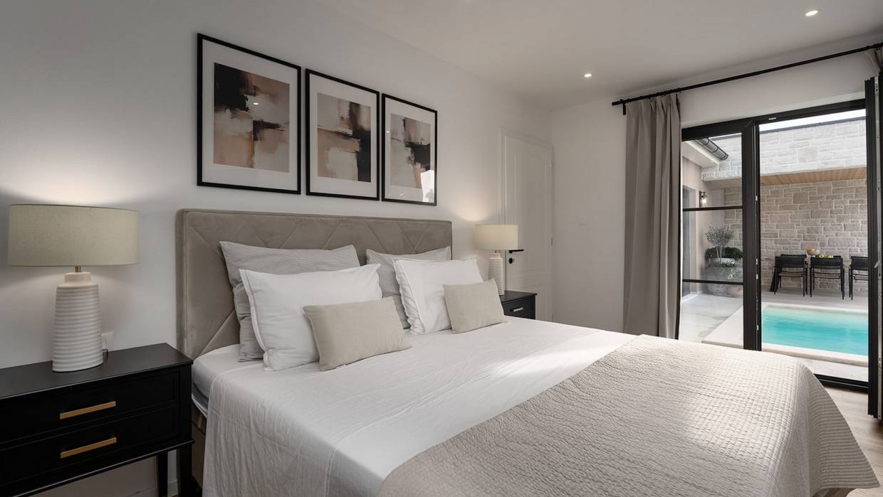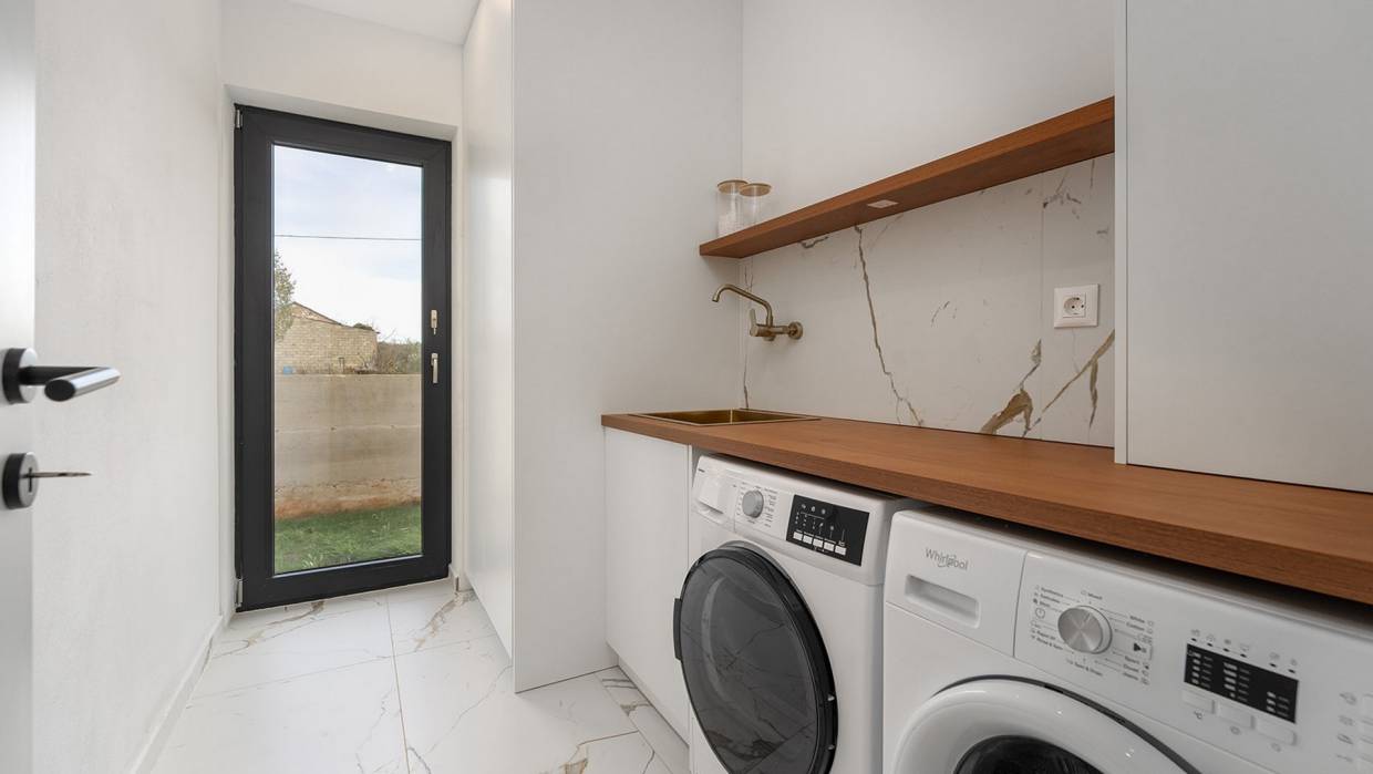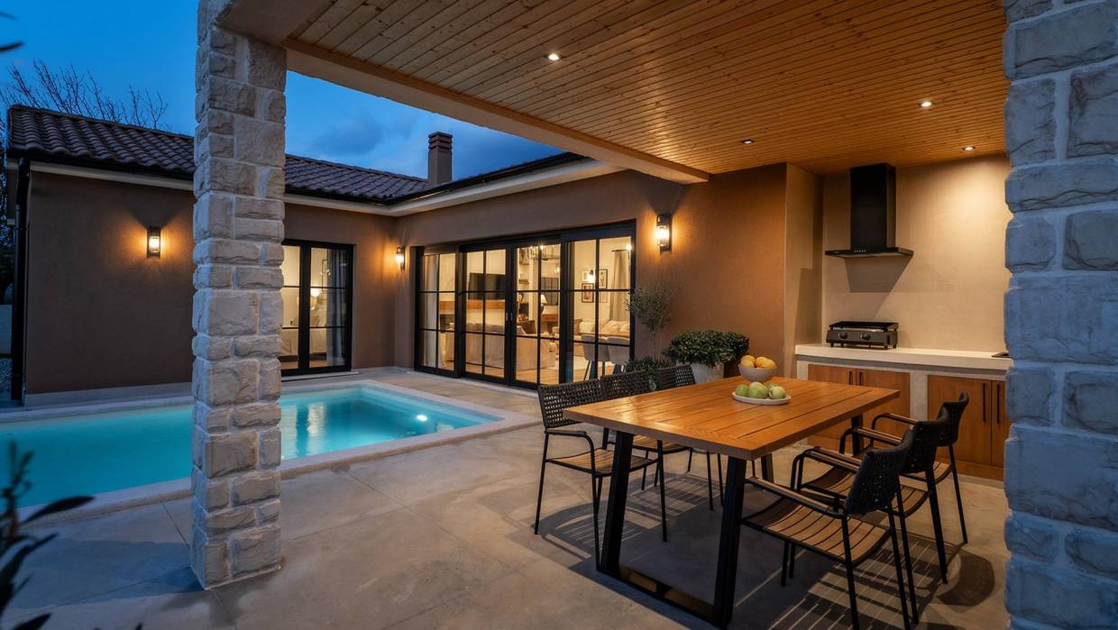 A charming single-storey house with a pool, designed as a blend of contemporary style and Istrian tradition. The spacious open-plan living area unites the living room, kitchen and dining room, offering a sense of comfort, airiness and functionality. In the private part of the house, there are two comfortable bedrooms, each with its own en-suite bathroom, while the master bedroom additionally features a practical walk-in wardrobe. There is also a separate laundry room and a guest toilet, making the house extremely practical for everyday living. The interior is designed with special attention — a combination of rustic and modern elements creates a warm, elegant and harmonious ambiance. Most of the furniture is custom-made to maximise functionality and aesthetics, and the property is sold fully furnished. The well-designed exterior is complemented by a swimming pool, sunbathing area, covered terrace and summer kitchen. The garden requires minimal maintenance while offering everything needed for relaxation and enjoyment throughout the year. For heating and cooling, the house is equipped with underfloor heating throughout and air-conditioning units.
