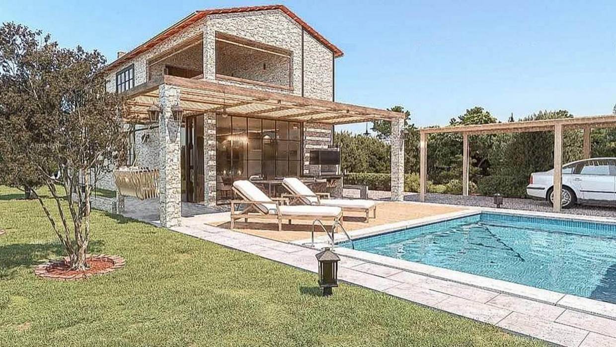 In the vicinity of Svetvinčent, in a quiet location, there is this house, which is currently in the Roh Bau phase, with an area of 200 m2, with a built-in swimming pool.
