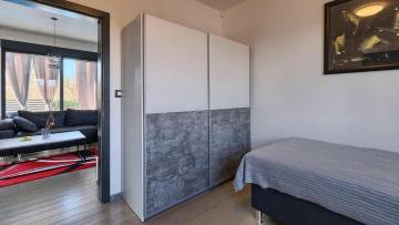 The house was built in 2016 and consists of an entrance hall, bathroom, beautiful open living room with kitchen with multiple glass walls that lead you to the summer kitchen and pool, two bedrooms, each with its own bathroom.