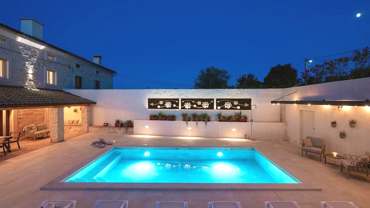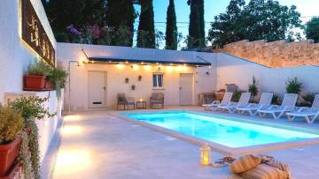 In the courtyard there is an outdoor swimming pool, a landscaped sunbathing area and a summer kitchen.