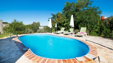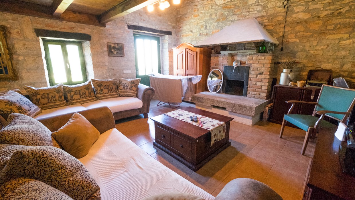 Stone house near Marcana, in front of the house is a furnished terrace. Nest to the house, there is a outdoor pool (7x3,5 m) with a landscaped terrace with sun loungers and parasols, and another covered terrace where you can enjoy the hottest days of summer. In addition there is a terrace and outdoor fireplace for grilling. On land there is a parking lot. House size is 130 m2 and consists of two floors.The ground floor is a large living room with two couches (120x200). The living room has a satellite TV and fireplace.Above the living room is a gallery which has a double bed (140x200) and a single bed (90x200).The ground floor has a fully equipped kitchen with electric / gas cooker and electric oven, dishwasher, refrigerator, microwave oven, coffee maker, toaster. The separate kitchen is a dining room.On the ground floor, next to the dining room is a bathroom with shower, toilet and washing machine.On the floor next to the two bedrooms is a bathroom with shower, toilet and bidet.There are two bedrooms upstairs with a double bed (180x200).