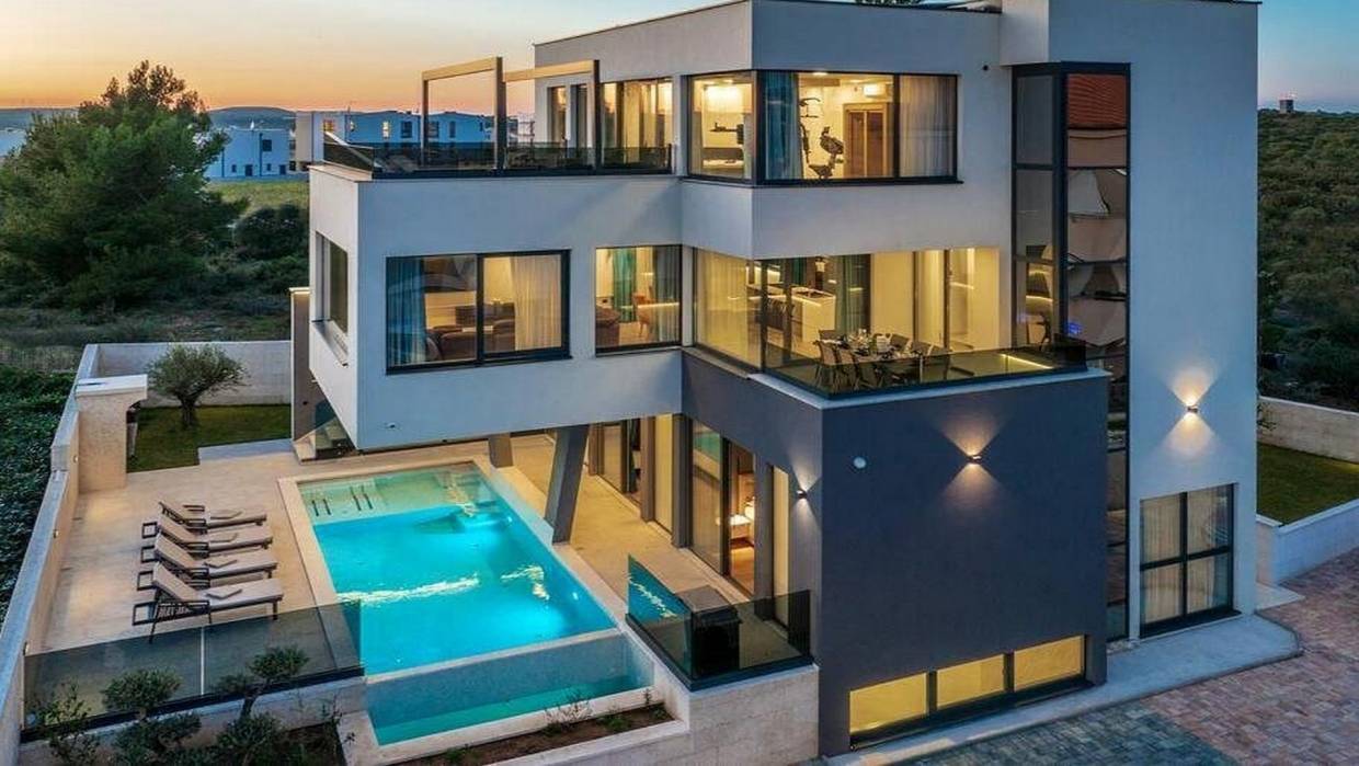 The house consists of four floors, interconnected by an internal staircase and a panoramic elevator.