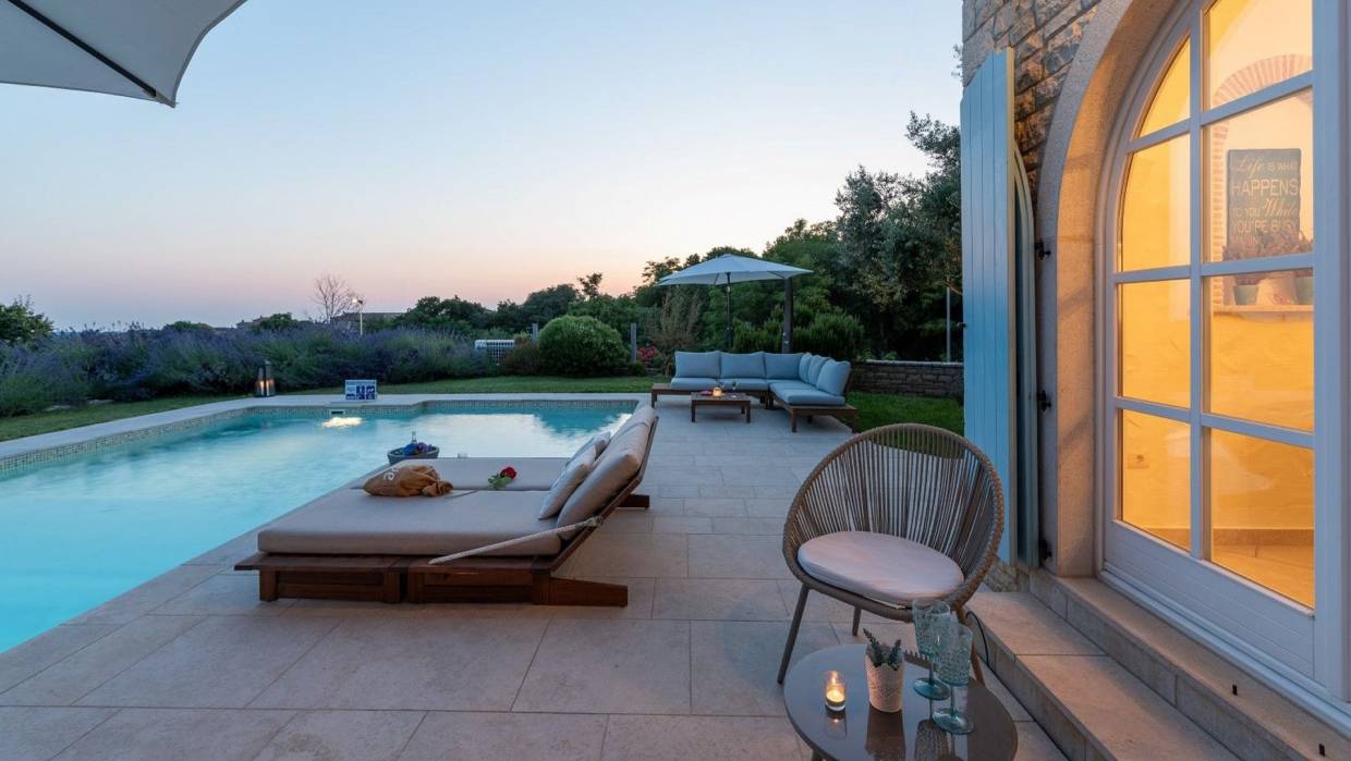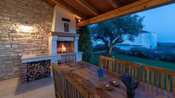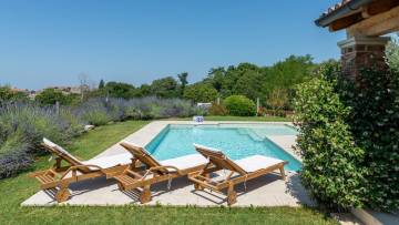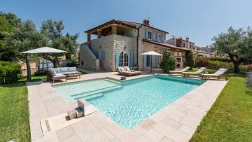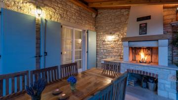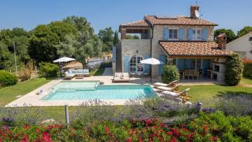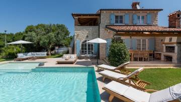 Very nice villa with authentic Istrian charm made in istrian stone with a combination of tradition and elegance at the same time. It's situated on a hilly position, it gives you a magnificent view at fields and vineyards or olive groves and the sea in the distance. This beautiful Istrian villa is for sale and combines authentic Mediterranean charm with modern comfort, creating the perfect environment for a peaceful family life or a luxurious vacation in the heart of Istria. The villa covers a total area of 170 m² and includes three bedrooms, two bathrooms, a spacious living room with dining room with fully equipped kitchen. The interior is decorated with many details and the attention gives a warm and cozy style while the outdoor space offers complete privacy and relaxation in a natural environment. The house is located on a landscaped plot, which is planted with Mediterranean plants. There is also a heated swimming pool with a sunbathing area, and a covered summer kitchen with a barbecue. The property is heated by underfloor heating via a heat pump, while the living room has a fireplace. For cooling, there are air conditioners.The landscaped garden features a private swimming pool of 57 m² with a spacious sun terrace, a covered area for socializing and a carefully maintained garden that further emphasizes the Mediterranean atmosphere. The location of the villa ensures peace and privacy, while at the same time it provides quick connections to the coast and all important amenities. Thanks to the high level of decoration, quiet location and recognizable Istrian character, this property represents an excellent opportunity for both personal use and as an investment in one of the most desirable parts of Istria.