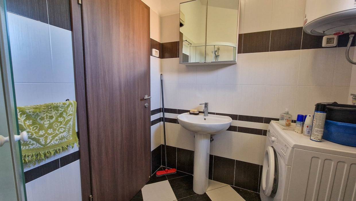 Stan se prodaje kompletno namješten, kao što je prikazano na fotografijama. Potrebno je samo kupiti kutnu garnituru u dnevnom boravku i postaviti umjesto te 2 stolice koje su vidljive na fotografijama.