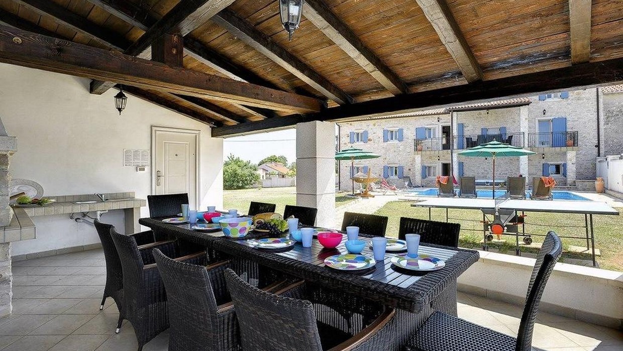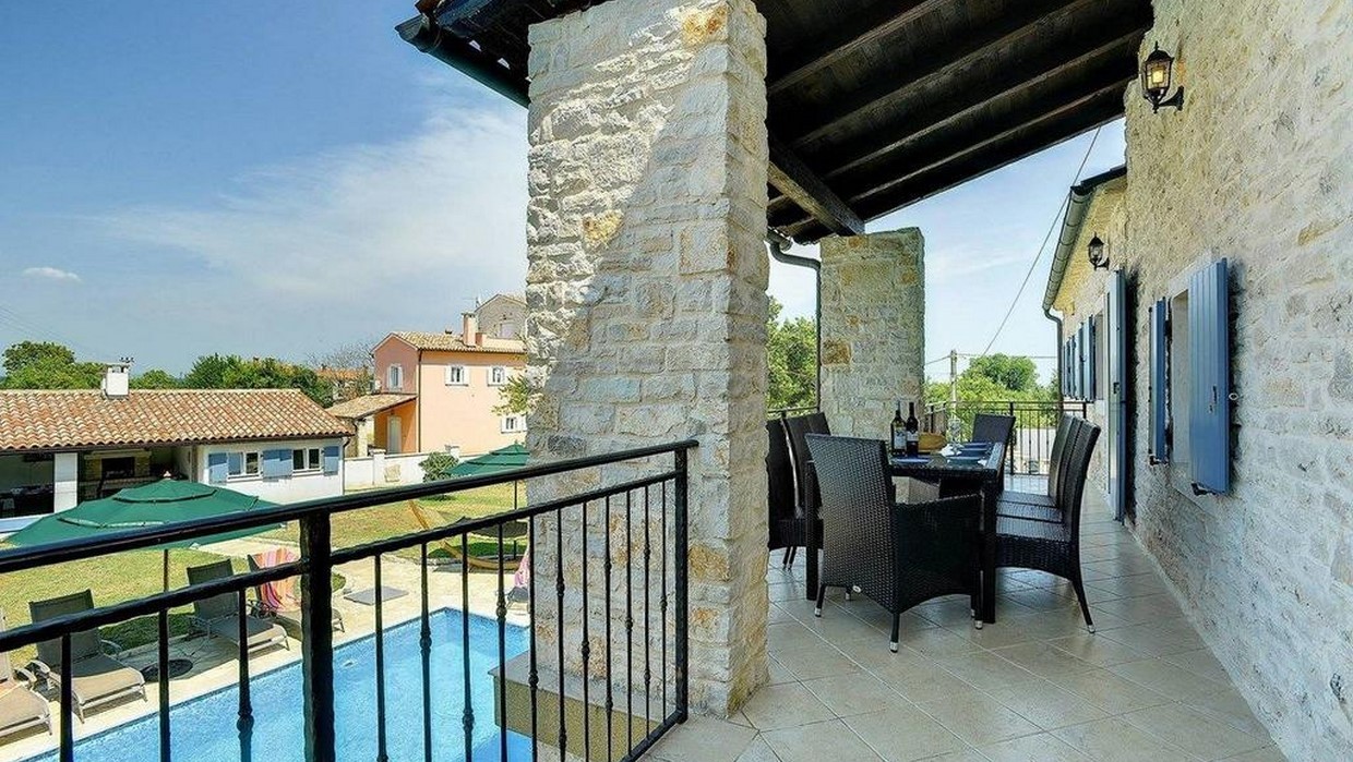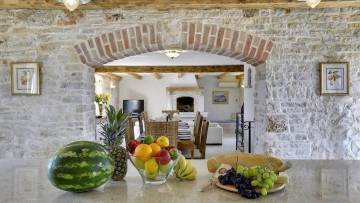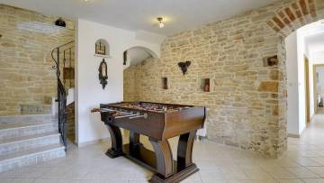 Renovirana tradicionalna kamena kuća ukupne površine 240 m², raspoređena na tri etaže: prizemlje, kat i potkrovlje.