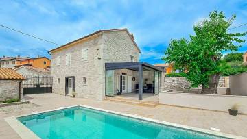 Prodaje se predivna samostojeća kamena kuća površine 130 m2 s bazenom. Kuća se prodaje kompletno renovirana i namještena u kombinaciji tradicionalne istarske kamene kuće u spoju sa modernom funkcionalnošću. Kuća ima odličnu privatnost jer susjedna kuća prema strani dvorišta i bazena nema niti jedan prozor. U kući je postavljeno podno grijanje te 4 klima uređaja, u svakoj spavaćoj sobi je kllima uređaj te u dnevnom boravku.