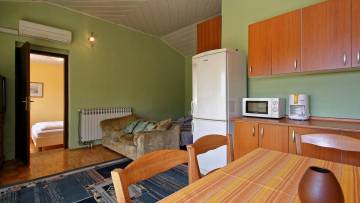 Kuća apartmanskog tipa na 4 etaze u mirnom naselju samo 3km od plaže u Poreču. Sastoji se od četiri apartmana od kojih svaki ima svoju kuhinju i kupatilo, te izlaz na zasebnu terasu. U sredini lijepo uređenog dvorišta nalazi se veliki zajednički bazen sa sunčalištem te ljetna kuhinja s natkrivenom terasom i grillom. Kuća ima nekoliko privatnih parkirnih mjesta i odlična je investicija za turizam.