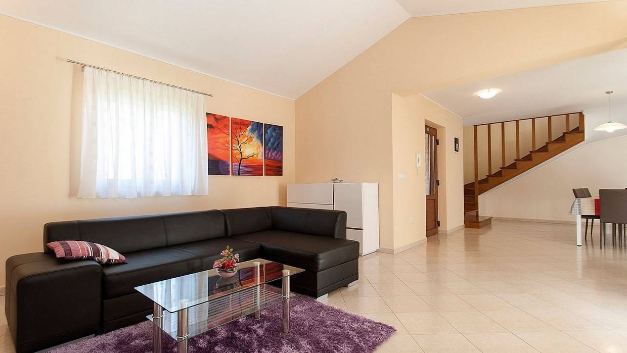 Kuća se sastoji od prostranog dnevnog boravka s puno prirodnog svjetla. Kuća ima tri udobne spavaće sobe, dvije kupaonice i potpuno opremljenu kuhinju povezanu s vanjskom terasom i sunčalištem.