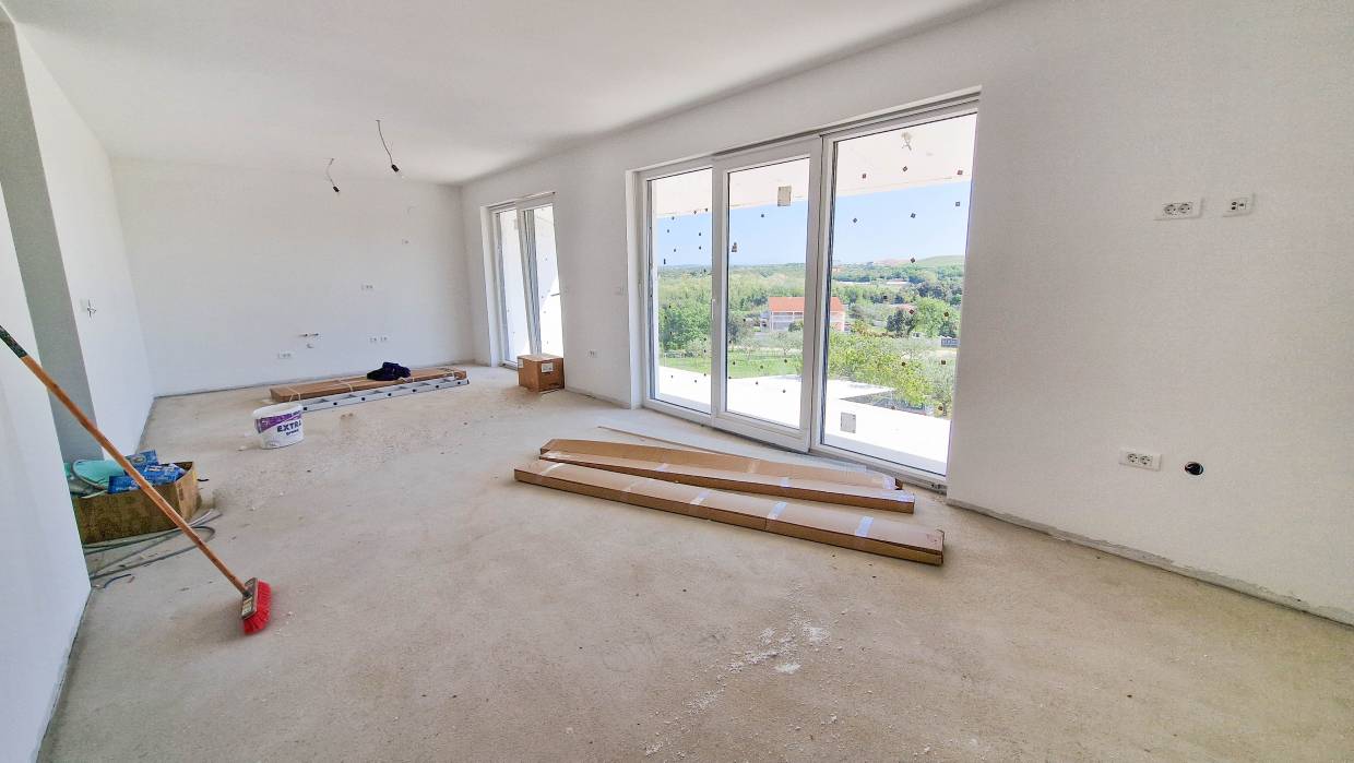 Prekrasan trosoban stan u Banjolama (Medulin). Stan se nalazi na prvom katu i ima ukupnu površinu od 130,63 m². Sastoji se od dnevnog boravka, kuhinje i blagovaonice u open space konceptu, tri spavaće sobe od kojih jedna ima vlastitu kupaonicu, dodatne kupaonice, hodnika, dvije terase te spremišta u potkrovlju. Stanu pripadaju dva parkirna mjesta i velika ostava u podrumu.