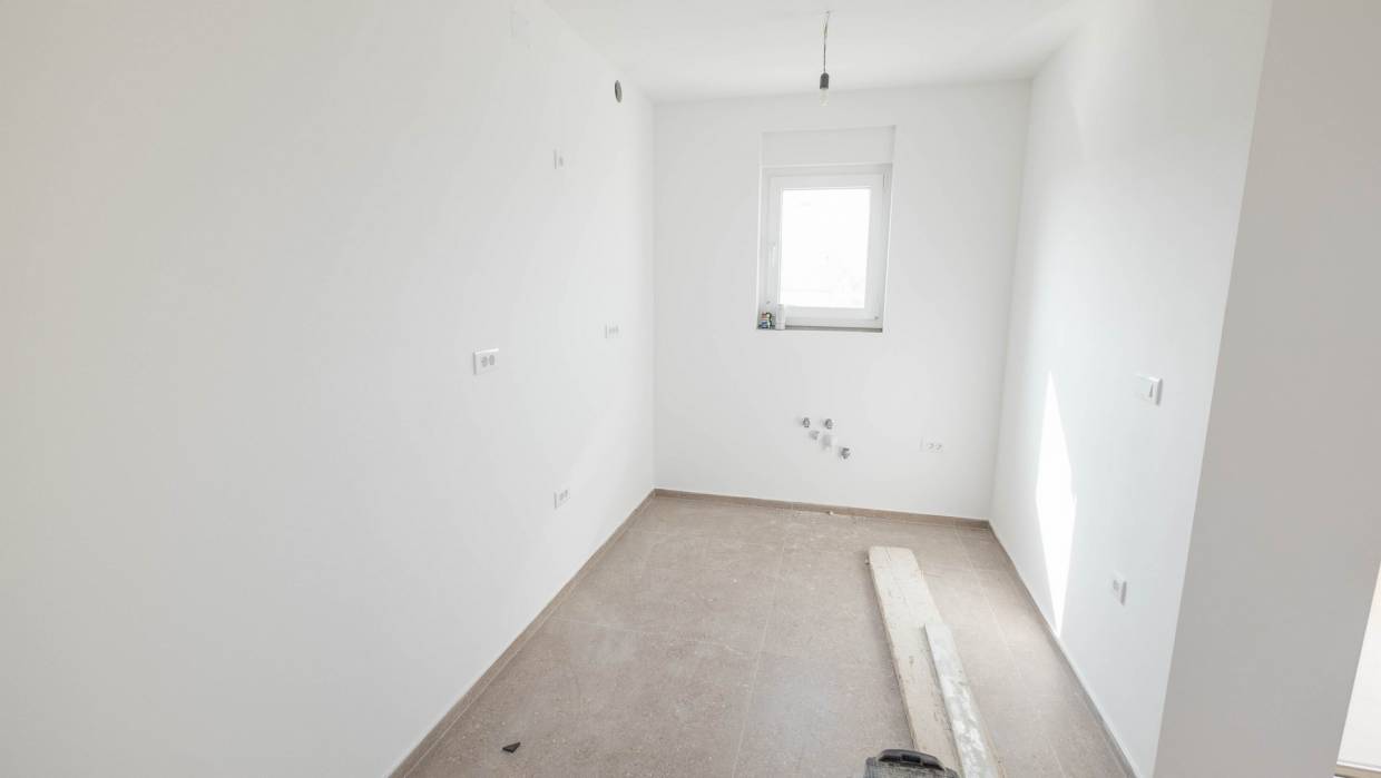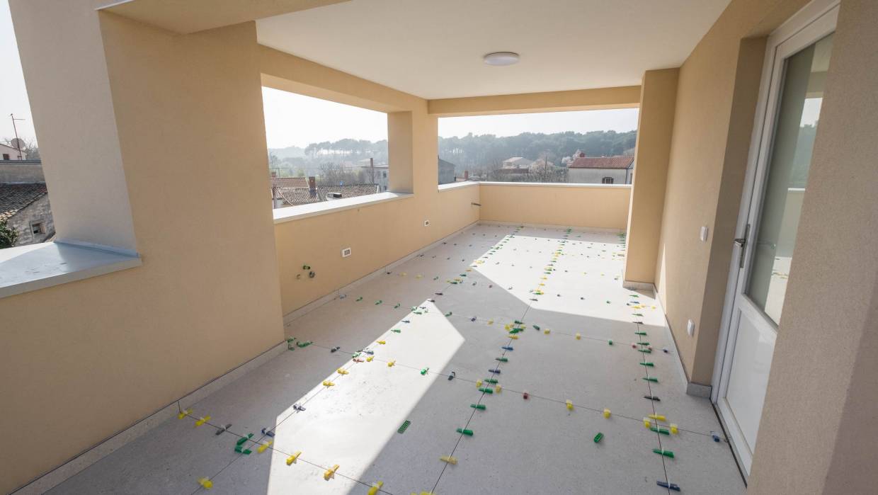 Pula (Pola) - Valdebek, appartamento di lusso con due camere da letto in costruzione, con una superficie totale di 80 sqm al secondo piano. L’appartamento è composto da ingresso, due camere da letto, soggiorno con cucina e zona pranzo, e loggia. Dispone inoltre di una terrazza sul tetto di 48 sqm e di un posto auto esterno.