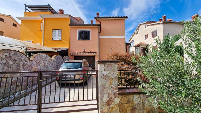 Bella e ben tenuta casa vicino al mare e alla spiaggia, costruita con alti standard. La casa è composta da un piano terra, un soppalco e un primo piano. Al piano terra c'è un ampio soggiorno con sala da pranzo, una cucina attrezzata con tutti gli elettrodomestici necessari e un bagno. L'ingresso conduce ai piani superiori con una bella scala. C'è una grande camera da letto al piano soppalco, mentre al primo piano abbiamo altre due spaziose camere da letto, ideali per la famiglia o gli ospiti. La stanza dei bambini può essere facilmente adattata alle tue esigenze. L'ampio bagno è al piano superiore. Una delle camere da letto si apre su un'ampia terrazza, perfetta per rilassarsi all'ombra e in pace, al riparo dalla vista e dal vento. La casa è collegata al riscaldamento centralizzato a gasolio. La proprietà è inoltre dotata di un sistema di allarme. La casa ha un garage e un seminterrato che può essere convertito in una taverna.