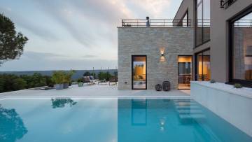 Questa villa è realizzata con materiali di qualità eccezionalmente elevata. Situata su un generoso terreno di 1.030 m², questa villa contemporanea offre una vista mozzafiato sul paesaggio circostante e combina 183 m² di raffinati spazi interni su due livelli con 45 m² di terrazze e una piscina a sfioro di 41 m². Progettata all'insegna del comfort e della tranquillità, offre l'ambiente perfetto per il relax e la vita familiare. Architettonicamente, la villa raggiunge una perfetta integrazione tra interni ed esterni, favorendo una naturale armonia con l'ambiente circostante. Gli interni presentano materiali di pregio e una meticolosa attenzione ai dettagli, esaltando sia il fascino estetico che la praticità. L'ampio open space comprende un elegante soggiorno, una zona pranzo e una cucina italiana di alta gamma dotata di elettrodomestici tedeschi di alta gamma. Sono presenti tre camere da letto, ciascuna con bagno privato, che offrono comfort e privacy. La suite padronale si distingue per la sua terrazza privata, il lussuoso bagno privato con cabina doccia, vasca da bagno freestanding e una vista mozzafiato. Un'area benessere dedicata con sauna e vasca idromassaggio, insieme a un bagno per gli ospiti al piano terra, contribuisce al fascino della villa. Arredi di design italiano, alti soffitti di 3,3 metri e finestre a tutta altezza inondano l'open space di luce naturale, creando un'atmosfera luminosa e ariosa. All'esterno, ampie terrazze, una piscina a sfioro privata e una zona pranzo all'aperto con barbecue incorporato sono circondate da uno splendido giardino mediterraneo, perfetto per intrattenere gli ospiti o semplicemente rilassarsi in tutta tranquillità. Il giardino recintato è dotato di un sistema di irrigazione automatico e di illuminazione esterna. Il parcheggio include un cancello scorrevole automatico e la casa è protetta da un sistema di sicurezza completo e da un'illuminazione esterna automatizzata per un maggiore comfort e sicurezza. In posizione ideale sulla costa orientale dell'Istria, la villa gode di viste panoramiche e di un raro mix di riservatezza e comodità, con facile accesso a servizi locali come negozi, scuole, asili, servizi sanitari e trasporti pubblici. La spiaggia più vicina è a soli 20 minuti di auto. Che siate alla ricerca di una tranquilla residenza privata o di un redditizio investimento locativo, questa proprietà offre un'opportunità unica per vivere il fascino e lo stile di vita dell'Istria. In totale, la superficie edificata si estende su 237 m², di cui 183 m² di spazi interni, 45 m² di terrazze, un ripostiglio di 4 m² e una piscina esterna di 41 m².
