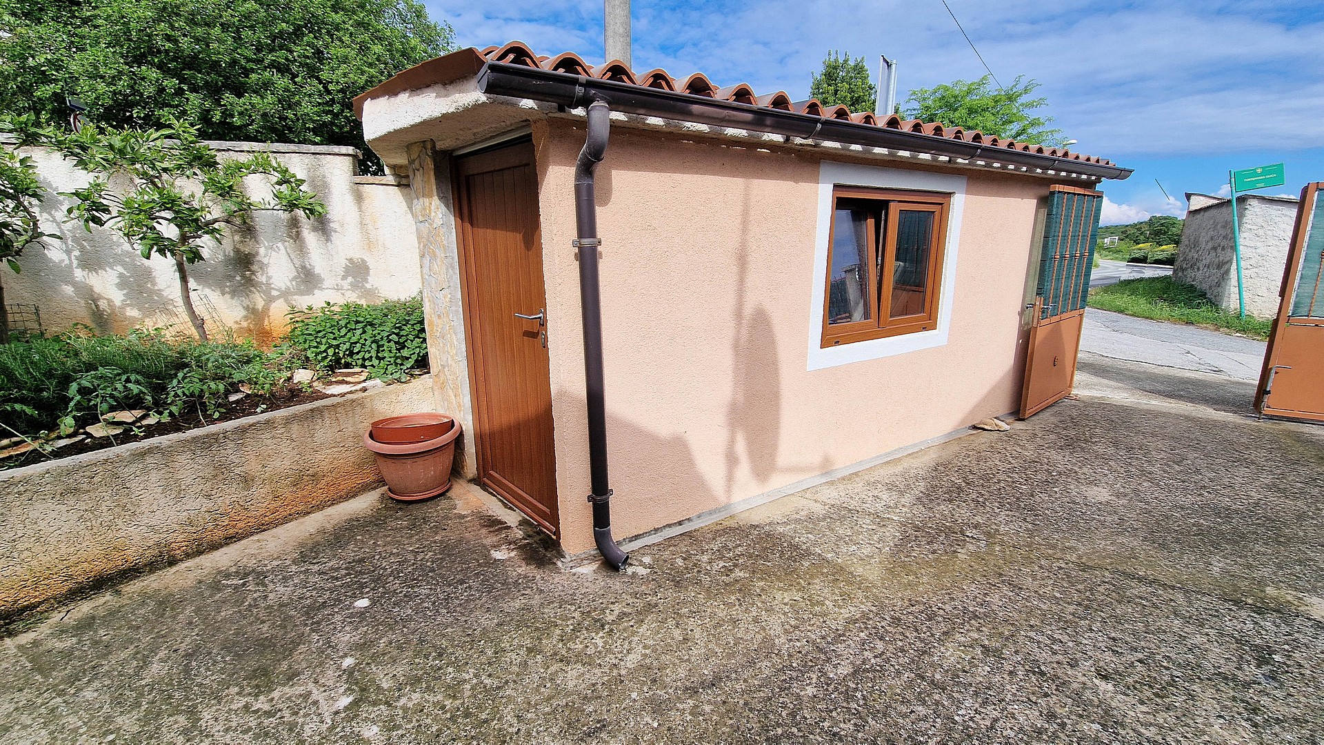 Eine Doppelhaushälfte mit einer Wohnfläche von 90 m² steht in der Nähe von Pula zum Verkauf. Das Erdgeschoss verfügt über ein Wohnzimmer mit Esszimmer, eine Küche, ein Schlafzimmer, ein Badezimmer, einen Flur und einen Abstellraum. Im Zwischengeschoss befindet sich eine Galerie, die als Arbeitszimmer genutzt werden kann. Im ersten Stock befinden sich ein Schlafzimmer mit Balkon und ein Badezimmer. Das Haus wird komplett möbliert und ausgestattet verkauft. Das Schlafzimmer im Obergeschoss ist mit Laminat ausgelegt, der Rest des Hauses mit Fliesen. Das Haus verfügt über zwei Klimaanlagen, einen Kamin und eine elektrische Fußbodenheizung im oberen Schlafzimmer. Das Dach wurde vor acht Jahren komplett renoviert. Strom- und Wasseranschlüsse sind vorhanden, außerdem verfügt das Haus über eine Klärgrube sowie einen Telefon- und Internetanschluss. Der 78 m² große Garten kann als Parkplatz für zwei Autos oder zum Schatten spenden unter dem Vordach genutzt werden. Die Ost-Süd-Ausrichtung des Hauses sorgt für ausreichend Sonnenlicht den ganzen Tag über. Bei Interesse an einer Besichtigung oder für weitere Informationen kontaktieren Sie uns gerne.
