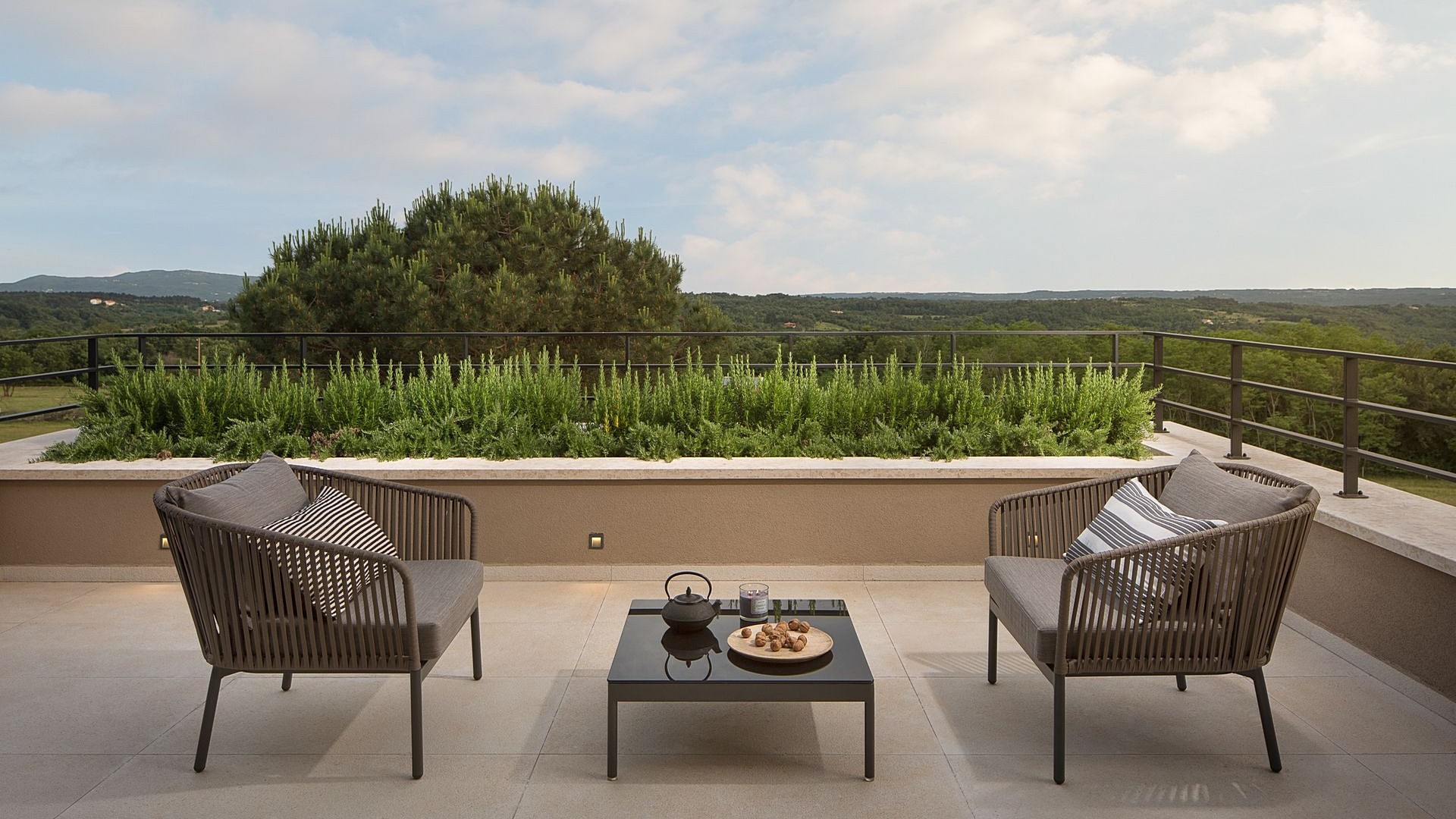 Diese Villa ist aus außergewöhnlich hochwertigen Materialien gebaut. Diese moderne Villa liegt auf einem großzügigen Grundstück von 1.030 m² und bietet einen atemberaubenden Blick auf die umliegende Landschaft. Sie vereint 183 m² eleganten Wohnraum auf zwei Ebenen mit 45 m² Terrassen und einem 41 m² großen Infinity-Pool. Das Design ist auf Komfort und Ruhe ausgelegt und bietet den perfekten Rahmen für Entspannung und Familienleben. Die Villa verbindet architektonisch Innen- und Außenbereich nahtlos und schafft so eine natürliche Harmonie mit der Umgebung. Der Innenraum besticht durch hochwertige Materialien und viel Liebe zum Detail, was sowohl Ästhetik als auch Funktionalität unterstreicht. Der großzügige, offene Grundriss umfasst ein stilvolles Wohnzimmer, einen Essbereich und eine hochwertige italienische Küche mit hochwertigen deutschen Geräten. Drei Schlafzimmer, jeweils mit eigenem Bad, bieten Komfort und Privatsphäre. Die Master-Suite besticht durch ihre private Terrasse, ihr luxuriöses Bad mit ebenerdiger Dusche, freistehender Badewanne und einen atemberaubenden Ausblick. Ein eigener Wellnessbereich mit Sauna und Whirlpool sowie ein Gäste-WC im Erdgeschoss tragen zum Charme der Villa bei. Italienische Designermöbel, hohe Decken (3,3 Meter) und raumhohe Fenster durchfluten den offenen Wohnbereich mit natürlichem Licht und schaffen ein helles, luftiges Ambiente. Im Außenbereich erwarten Sie großzügige Terrassen, ein privater Infinity-Pool und ein Essbereich im Freien mit eingebautem Grill, umgeben von einem wunderschön angelegten mediterranen Garten – ideal für geselliges Beisammensein oder einfach zum Entspannen. Der umzäunte Garten verfügt über eine automatische Bewässerungsanlage und Landschaftsbeleuchtung. Der Parkplatz ist mit einem automatischen Schiebetor ausgestattet. Das Haus ist mit einem umfassenden Sicherheitssystem und automatisierter Außenbeleuchtung für mehr Komfort und Sicherheit gesichert. Die Villa liegt ideal an der Ostküste Istriens und bietet einen Panoramablick sowie eine einzigartige Mischung aus Abgeschiedenheit und Komfort. Sie bietet einfachen Zugang zu lokalen Annehmlichkeiten wie Geschäften, Schulen, Kindergärten, Gesundheitsdiensten und öffentlichen Verkehrsmitteln. Der nächste Strand ist nur 20 Autominuten entfernt. Ob Sie ein ruhiges Privathaus oder eine lukrative Mietinvestition suchen – diese Immobilie bietet Ihnen die perfekte Gelegenheit, den Charme und Lebensstil Istriens zu erleben. Die Gesamtfläche beträgt 237 m², davon 183 m² Wohnfläche, 45 m² Terrassen, ein 4 m² großer Abstellraum und ein 41 m² großer Außenpool.