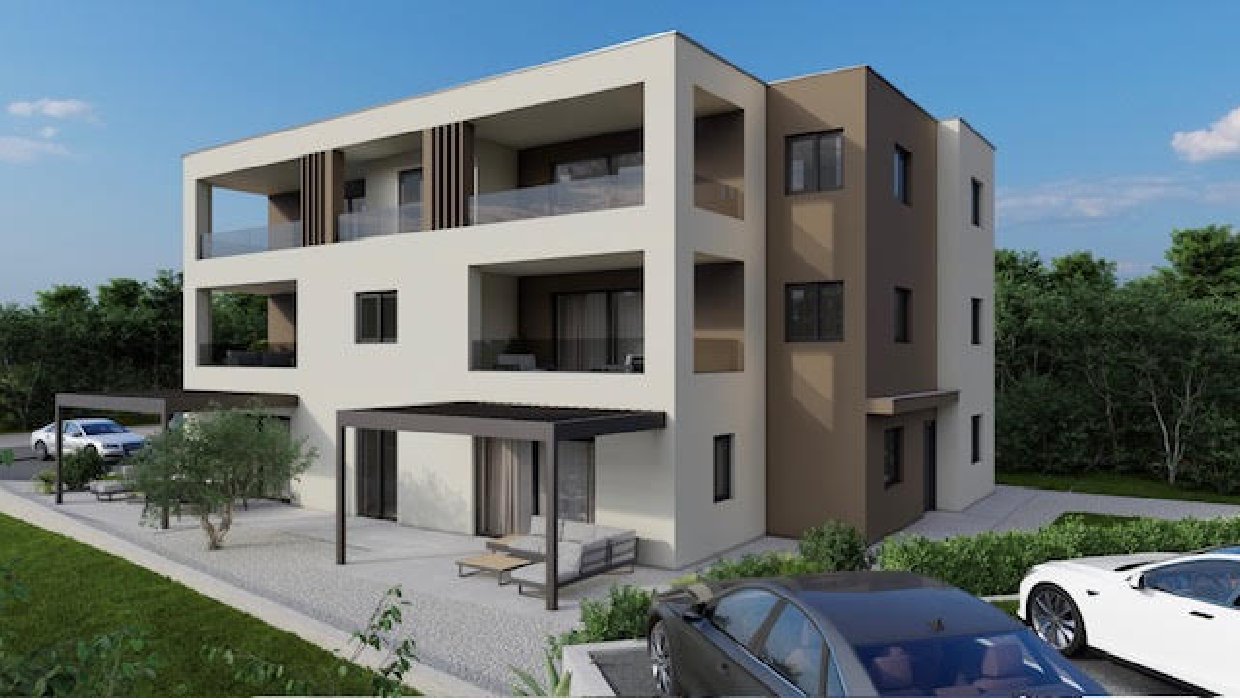 Na prodaju dvosoban stan u prizemlju na odličnoj lokaciji 700 m od mora i centra grada. Stan se nalazi u manjoj stambenoj zgradi od svega 5 stambenih jedinica. Stan je površine 83.70 m² koji se nalazi u prizemlju zgrade. Sastoji se od dvije spavaće sobe, kupaone, gostinjskog toaleta, ostave, hodnika, prostranog dnevnog boravka, blagovaonice i kuhinje s izlazom na terasu natkrivenu pergolom i vrt u nastavku. Stanu pripada jedno parkirno mjesto. Zgrada će biti moderne arhitekture te će biti građena kvalitetnim materijalima. Početak gradnje 2025 g. završetak prva polovica 2026 g..