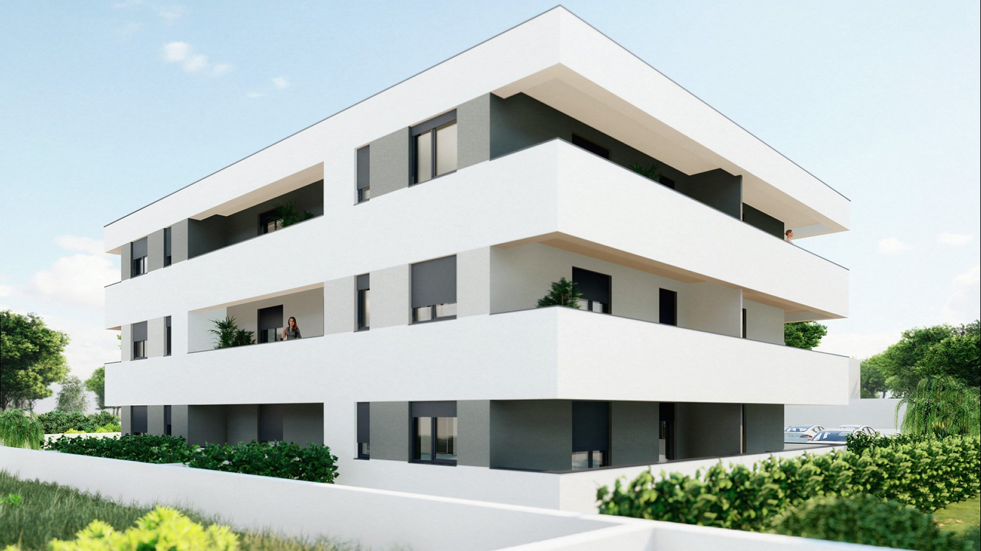 Svakom stanu pripada jedno parkirno mjesto a stanovima u prizemlju pripada i dio vrta.