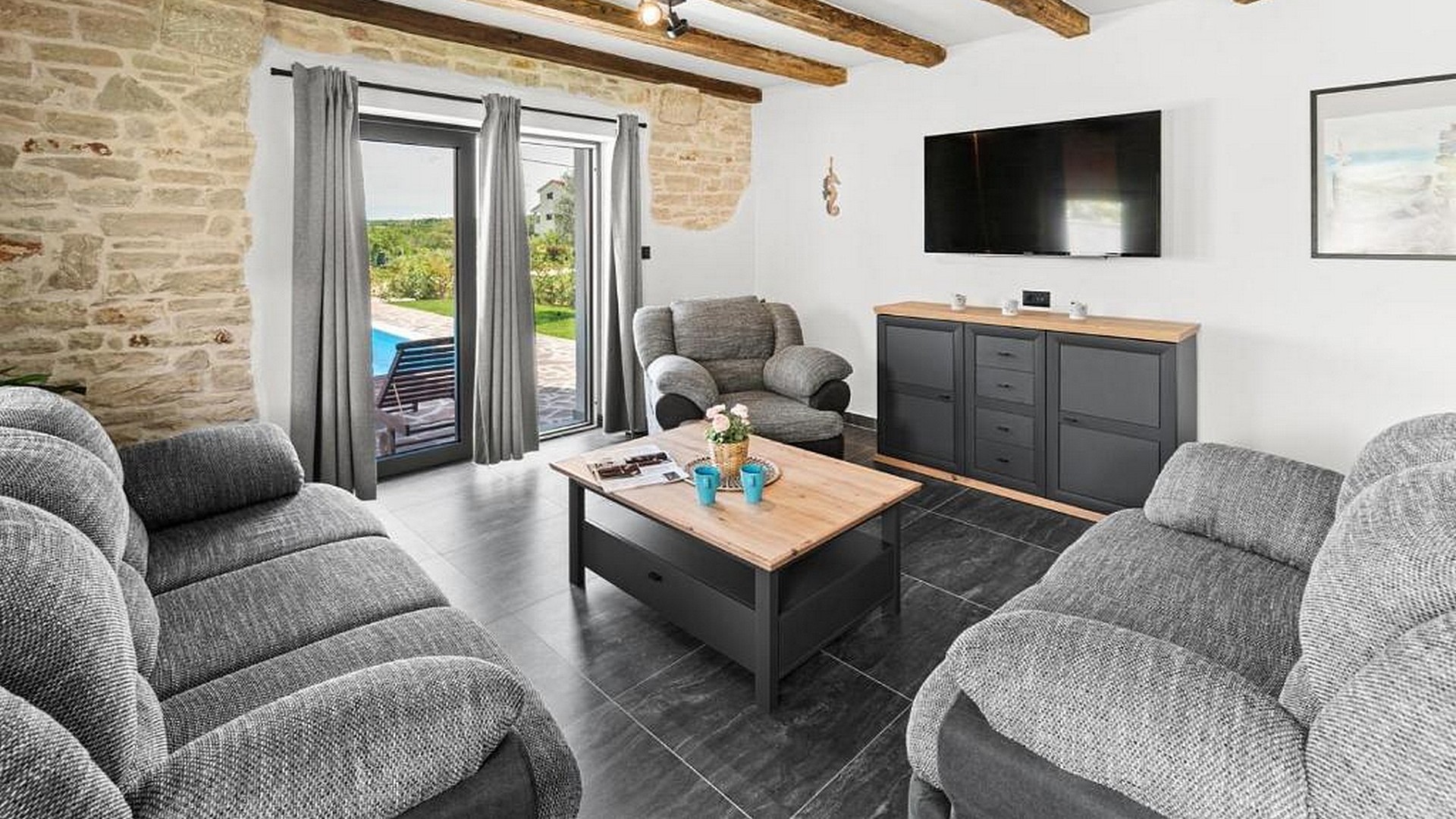 Prekrasna renovirana kamena kuća potpuno renovirana 2024 godine je idealan spoj modernog i tradicionalnog. Kuća se prostire na dvije etaže. U prizemlju je prostrani dnevni boravak, kuhinja, hodnik, jedna spavaća soba, prekrasno uređena kupaonica te dodatni prostor koji se može koristiti kao vešeraj ili ostava dok na prvom katu kuće se nalaze dvije prostrane spavaće sobe svaka sa svojom vlastitom kupaonicom. Nekretnini još pripada i vanjski bazen veličine 6x4 metra i ljetna kuhinja idealna za pripremu roštilja u vrućim ljetnim danima. Smještena samo nekoliko minuta vožnje od grada Poreča i njegovih predivnih plaža, nekretnina je savršena za one koji traže miran odmor u blizini mora ili žele investiciju u turističke svrhe. Okućnica je uređena s bazenom, travnjakom obogaćenim mediteranskim biljem i stoljetnom maslinom. Natkrivena ljetna kuhinja s kaminom i stolom za objedovanje daje posebni ugođaj. Ispred je parking. Kuća je opremljena klima uređajima za grijanje i hlađenje te podnim grijanjem na struju. Prilikom renoviranja, instalirane su nove vodovodne i električne instalacije te je napravljena betonska ploča, a kuća je spojena na gradsku kanalizaciju. Ova nekretnina dolazi potpuno namještena i opremljena, kao što je prikazano na fotografijama. Idealna je za življenje kroz cijelu godinu ili kao atraktivna turistička destinacija. Sa svom svojom udobnošću, modernim sadržajima i blizinom mora, ova kamena kuća predstavlja iznimnu priliku za kupce u potrazi za kvalitetnim životom ili investicijom.