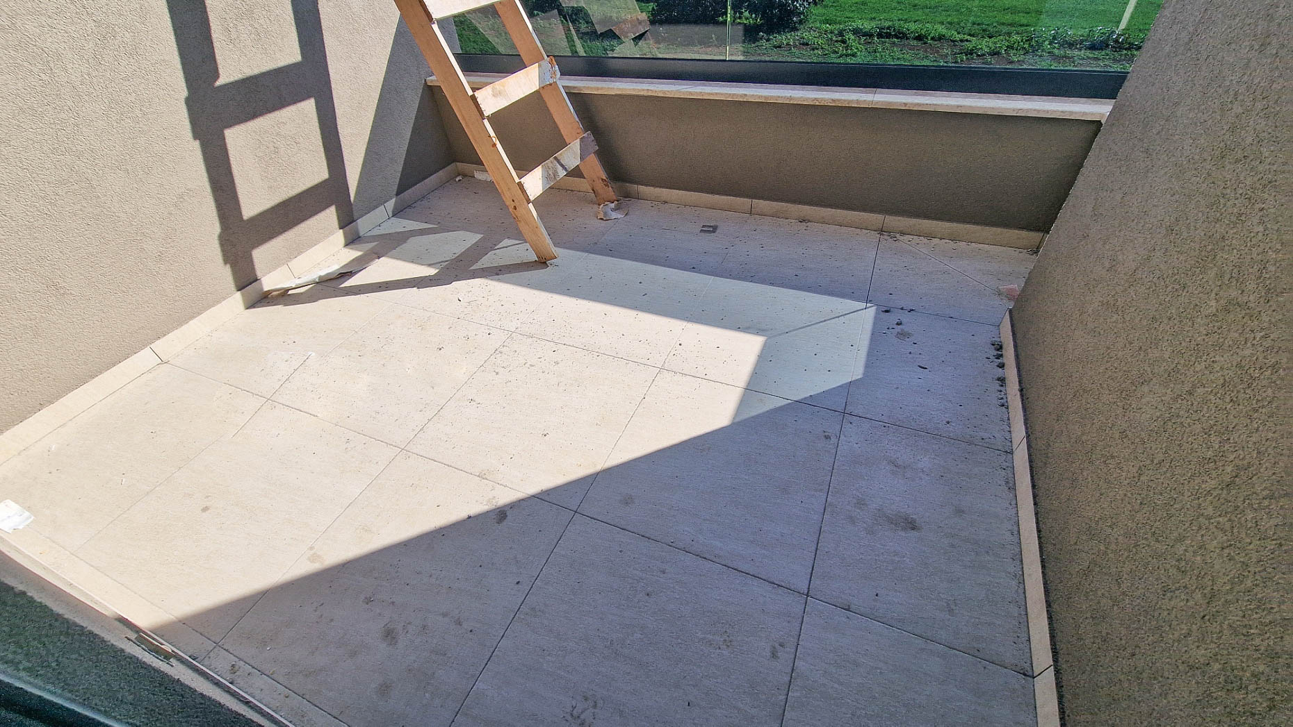 Stan s tri spavaće sobe smješten na prvom katu zgrade u zgradi od samo 4 stana, prostire se na ukupno 93.76 m2. Satoji se ulaznog hodnika, prostranog dnevnog boravka povezanog s kuhinjom i blagovaonicom, s izlazom na dvije natkrivene terase, kupatila, toalatea i tri udobne spavaće sobe od kojih jedna ima privatnu kupaonicu.