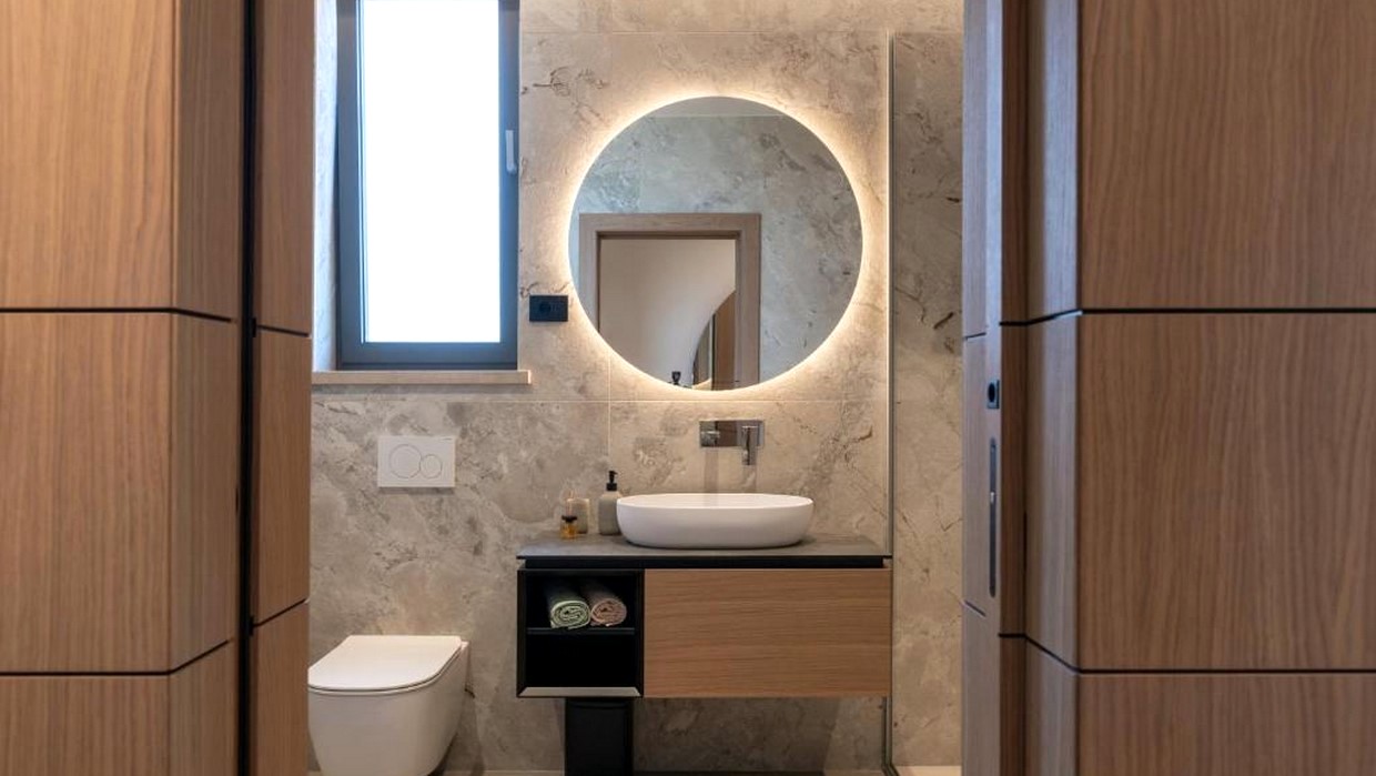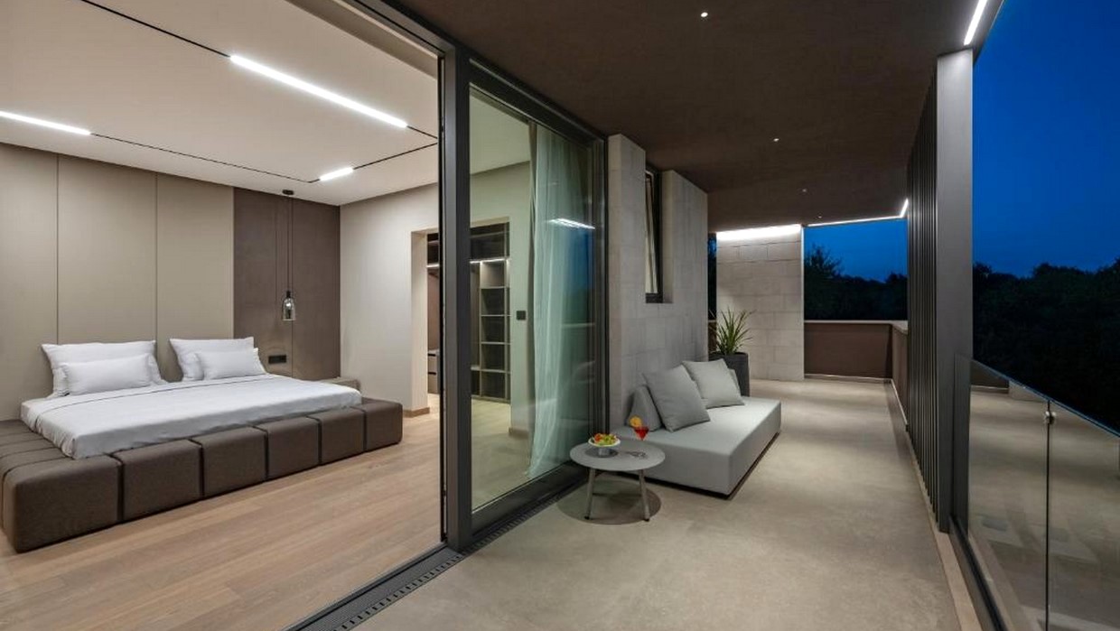 Luksuzna vila s prekrasnim pogledom na more. Vila površine 298 m2 građena je na zemljištu 890 m2. Prizemlje sadrži natkriveni ulaz, prostrani hodnik, gostinjski wc, open space dnevni boravak, kuhinju, blagovaonu s izlazom na natkrivenu terasu i bazen, praonicu rublja, tehničku prostoriju/ostavu i konobu. Na katu su tri prostrane spavaće sobe s vlastitim kupaonicama, garderobama i izlazom na natkrivenu terase. Vila ima grijani bazen površine 60 m2, hortikulturno lijepo uređen vrt, natkriven parking, građena je vrhunskim materijalima i opremljena dizajnerski namještajem te se takva i prodaje.