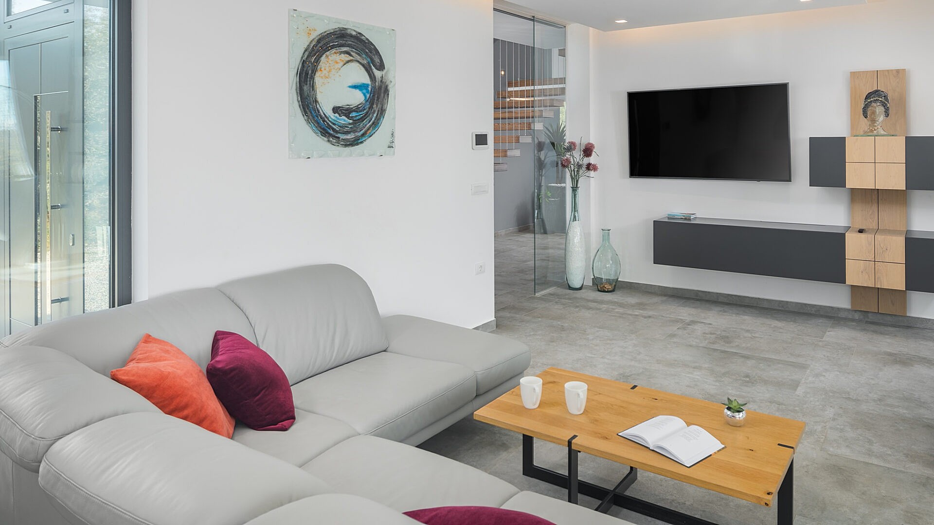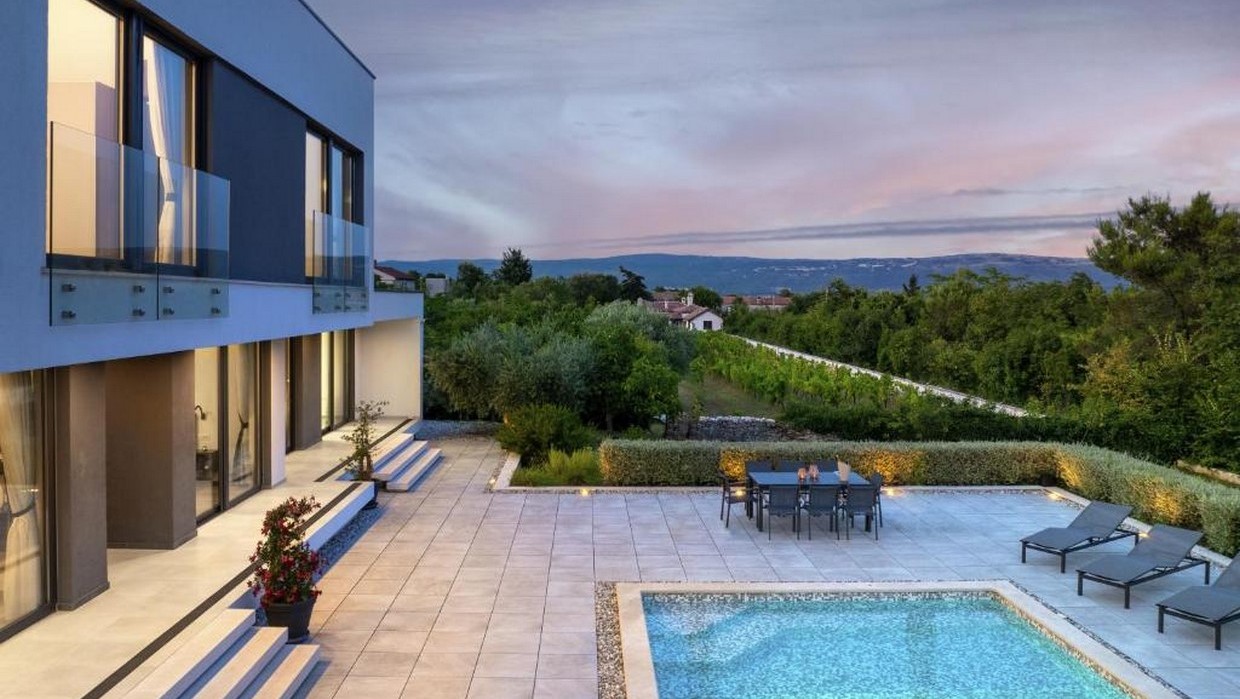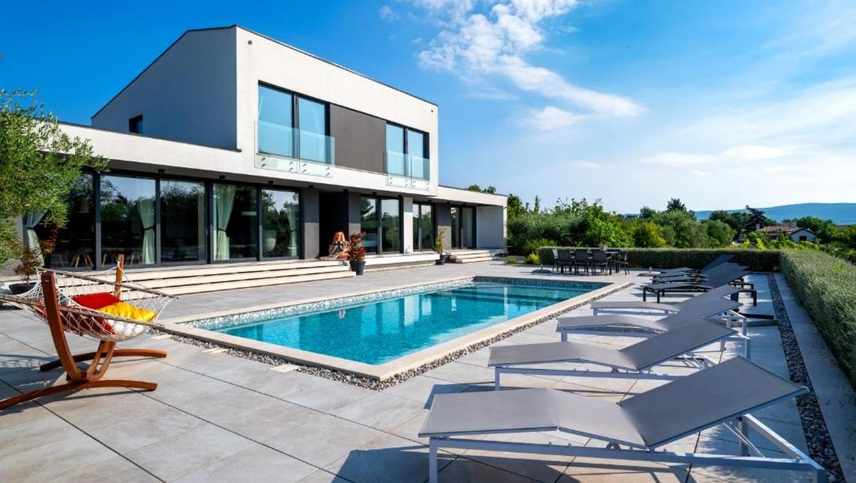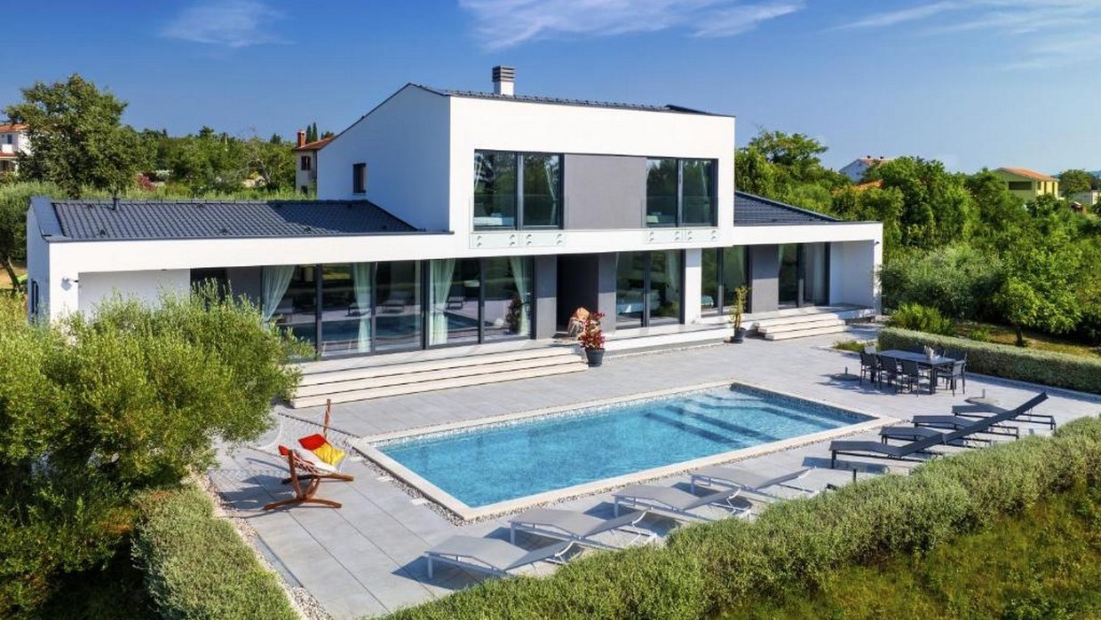 Vrhunsku moderna velika vila s bazenom na ogromnoj parceli veličine preko 4.000 m2 u blizini mora i plaža. Vila se sastoji od ulaznog hodnika, dnevnog boravka, kuhinje i blagovaonice, 2 velike spavaće sobe sa vlastitim kupaonicama te od još jedne velike prostorije predviđene za wellness, a može se urediti u 3.spavaću sobu. U prizemlju se još nalazi jedno spremište, wc i tehnička soba. Na katu se nalaze 2 velike spavaće sobe sa vlastitim kupaonicama te jedan open space kutak predviđen kao radni prostor. U sklopu okućnice nalazi se bazen veličine 50 m2 te pregršt maslina starosti od 30-250 godina. Vila je kvalitetno opremljena i namještena modernim namještajem po narudžbi i specifičnim mjerama sa njemačkom i austrijskog tržišta . -Termička izolacija poda (prizemlje/kat) sa 8 cm EPS stiroporom -Podno grijanje po cijeloj površini kuće putem dizalice topline -Fasadni dio je ETICS sustav sa 10 cm EPS stiropora te silikatno-silikonski završetak Rofix sustava -Samoventilirajući krov sa 16 cm termoizolacijskog materijala te obložen parnim hidroizolacionim branama, a sve to na armirano betonskoj površini. Završni sloj je kupa Bramac sustava antracit boje. -Vanjska stolarija je sva po mjeri rađena , ručni rad AluK profila sa termoizolirajućim aluminijem te troslojnim staklima punjenim argonom. -Daikin kompletna klimatizacija -priprema za ugradnju kutnog staklenog kamina Palazzeti na pelete -Prvoklasna unutarnja i vanjska keramika od Ecoceramics iz Španjolske -Unutarnja vrata su ručni rad i ručno bajcana , američki orah, visine 2,70 m. -Ulazne stepenice su ručni rad izrađene od hrasta , visećeg tipa na sajlu sa unutarnjom čeličnom konstrukcijom. -Unutarnja rasvjeta sva po narudžbi od Linea Lighta iz Italije , a ostatak rasvjete je Platek led.. Vanjska rasvjeta Paulmann iz Njemačke. -Bazen 50 m2 - elektroliza vode umjesto klora. PH 7.5 -Kuća ima zasebni ekološki sustav zbrinjavanja fekalija i otpadnih voda, Biofilter sistem njemačke marke Rewatec . - Kompletan sustav unutarnje vode je filtriran kroz 3 zasebna filtera te je voda omekšana Viessmann Aquahome sustavom. Topla voda je uvijek u standbyu od 500 L na 45 C. -Komunikacijski i sigurnosni sustav je sav preko GSMa, 4G brzine, WiFi, video nadzor i alarmni sustav...