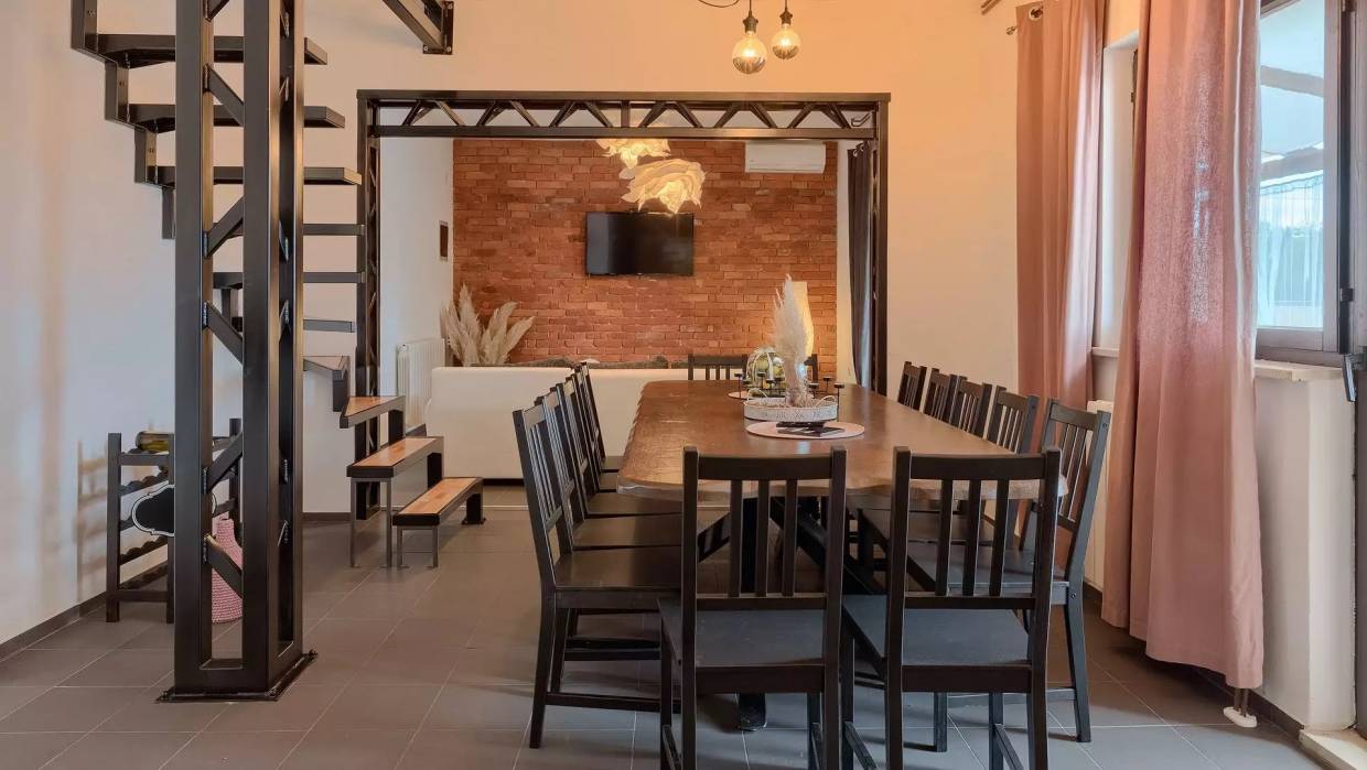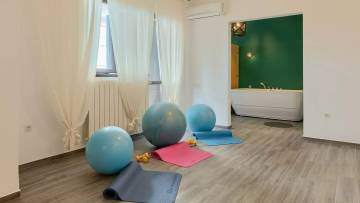 On the first floor there are 3 more bedrooms, 2 bathrooms, an area with a sauna, an area with a pool table and a place for practicing pilates. We also have a large covered terrace with a jacuzzi.