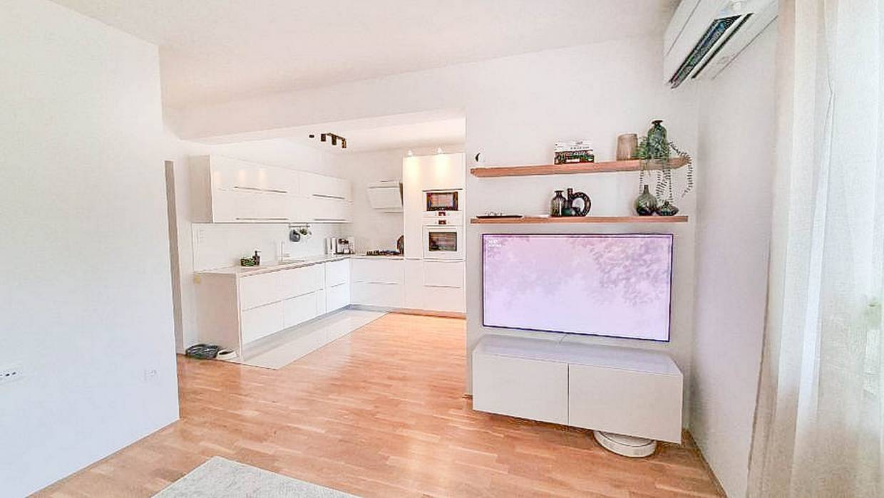 A nice and high-quality apartment in Šijana, in the immediate vicinity of absolutely all the necessary facilities, such as numerous shops, an elementary school, a kindergarten and others. The location of the apartment has excellent connections with all parts of the city. The apartment is equipped with top quality furniture and equipment, and is being sold as such. The apartment consists of: - entrance hall - open living room with dining room and kitchen - 2 bedrooms - bathrooms - pantry - balcony - parking space (not in the square footage of the apartment). The apartment was completely renovated and newly furnished in 2016, it is oriented to the south/east.