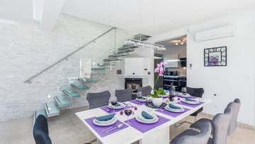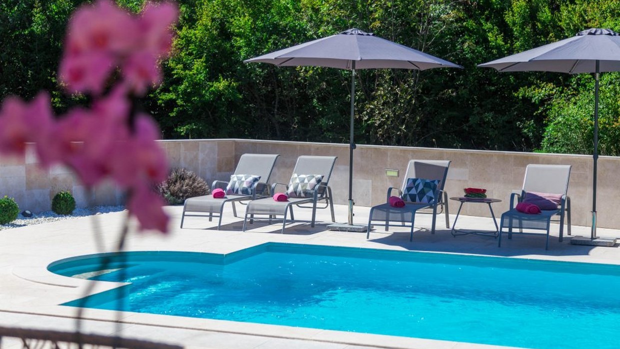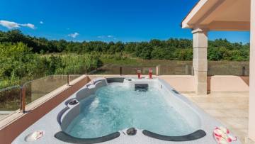 Beautiful modern villa situated in the eastern part of Istria only 4 km from the sea. The villa has 4 bedrooms, 4 bathrooms, a large bright living room, a kitchen and dining area. On the outside, there is a private pool, garden with Mediterranean aromatic spices, a terrace with covered barbecue and outdoor dining area on traditional stone table. The villa is fully air-conditioned with large windows giving plenty of natural light and fresh air. It's sold fully furnished.