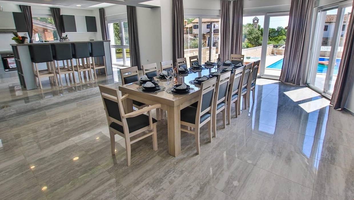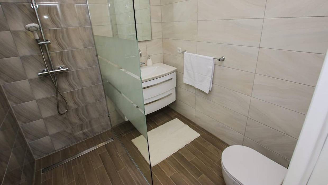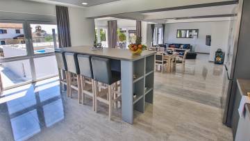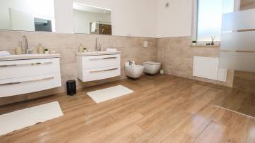 Villa near the sea with great potential for rent. The house consists of a main house with 5 bedrooms and 5 bathrooms and a separate apartment with a bedroom and a bathroom. The main house and the apartment are completely separate so that the apartment can be used without disturbing the guests in the main house. The main house consists on the ground floor of living room with kitchen and dining area, a bedroom, a bathroom and a storage room, which is used as a laundry room. Upstairs there are 4 bedrooms and 4 bathrooms and a large entrance hall in which the sauna is housed. The house has built-in air conditioning and the preparation of underfloor heating throughout the house. The hot water is regulated by a solar panel.